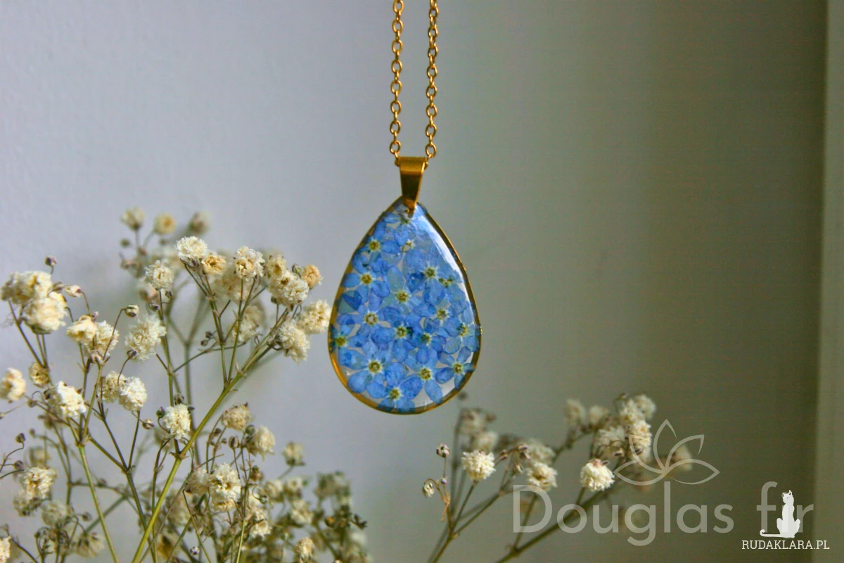 #handmade #epoxyresin #kwiatywżywicy #polnekwiaty #naszyjnik #biżuteriazniezapominajkami #kropla #łezka