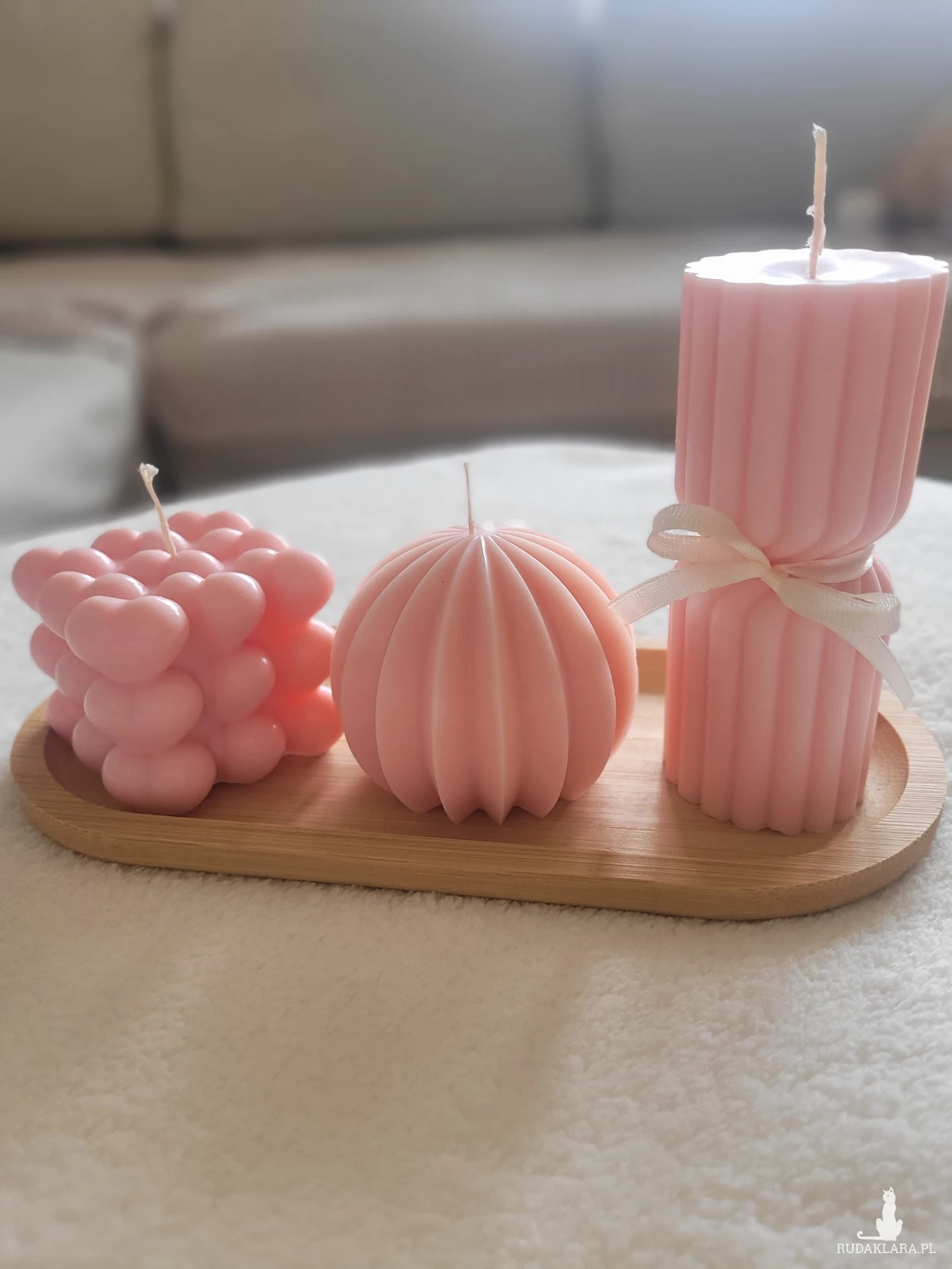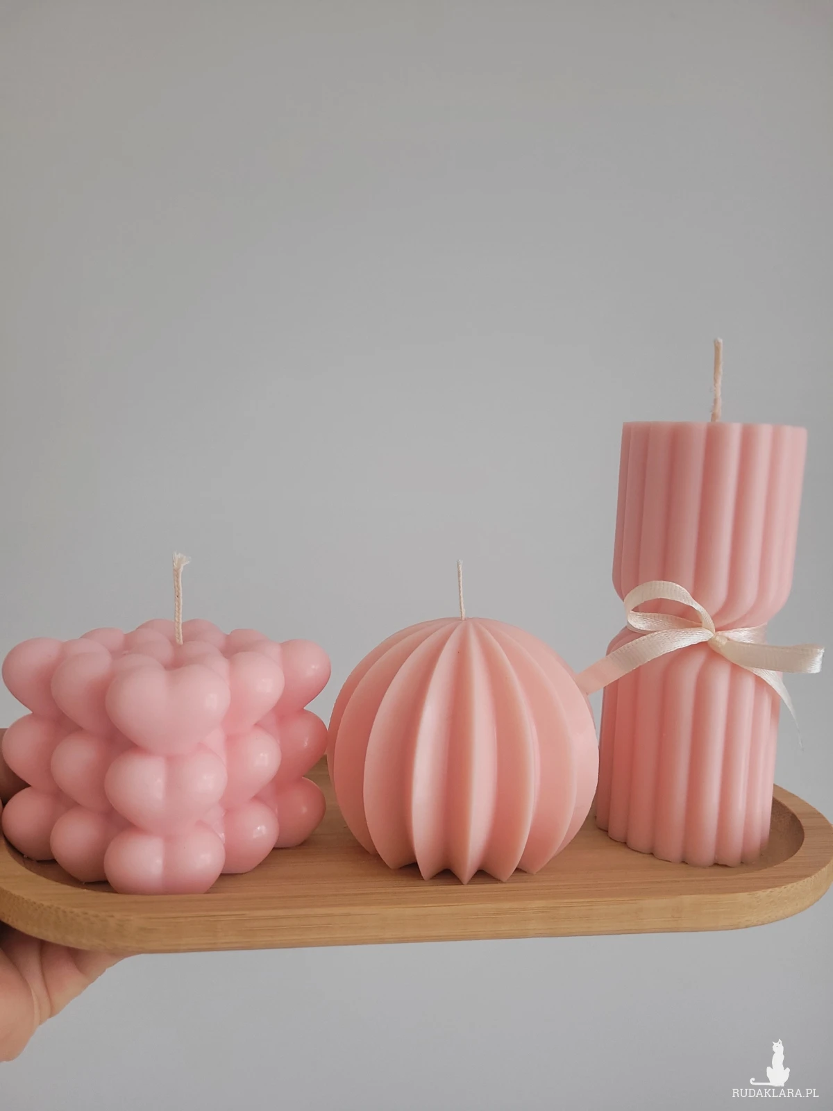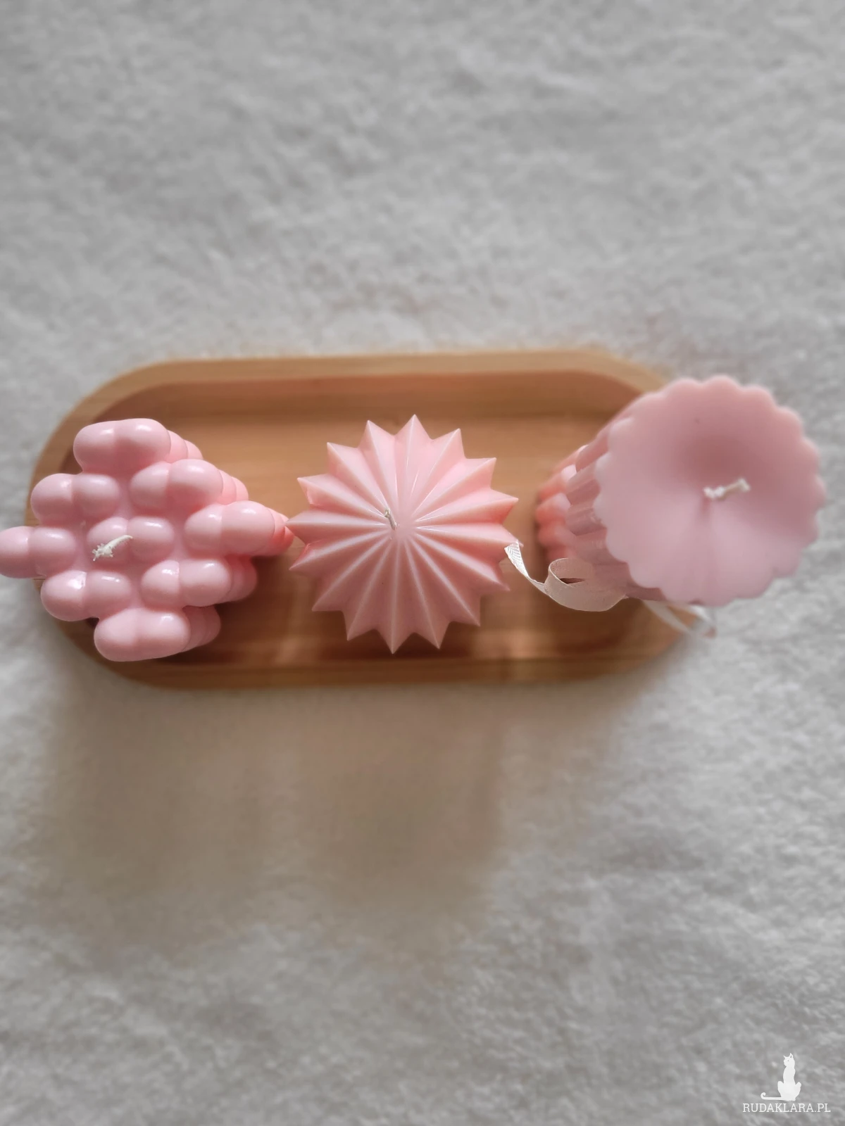Pastelowe kolor wosku ładnie kontrastują z drewnem.