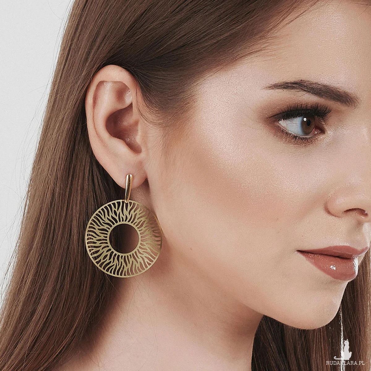 Okrągłe kolczyki z motywem promieni słonecznych, które w odpowiednim otoczeniu wpiszą się zarówno w stylizację miejską, jak i styl wieczorowy. Ich okrągły kształt podkreśla owal twarzy właścicielki. Ze względu na swoją ażurową budowę i materiał, z którego zostały wykonane, są wyjątkowo lekkie, można je więc nosić cały dzień bez obciążania uszu.