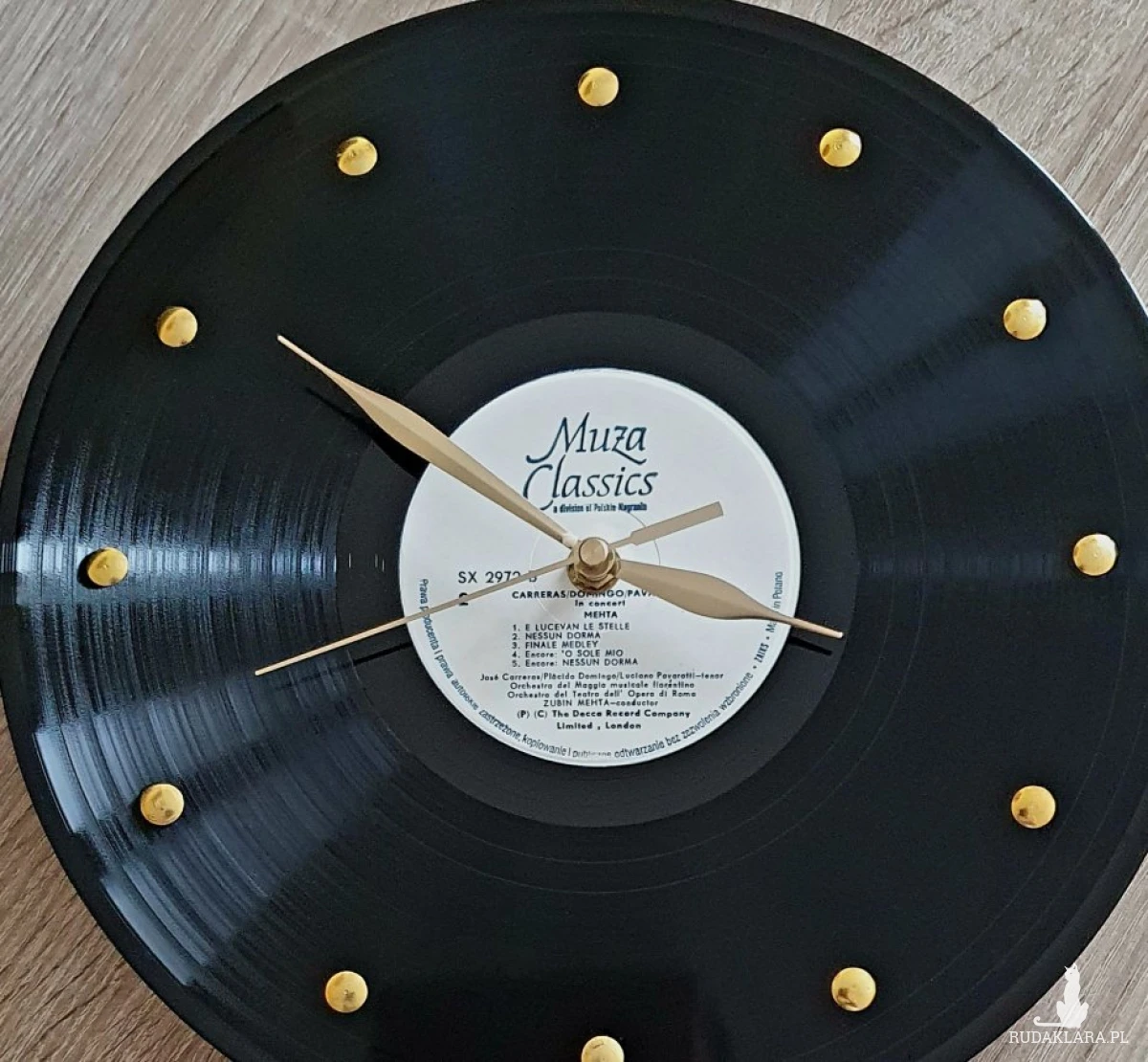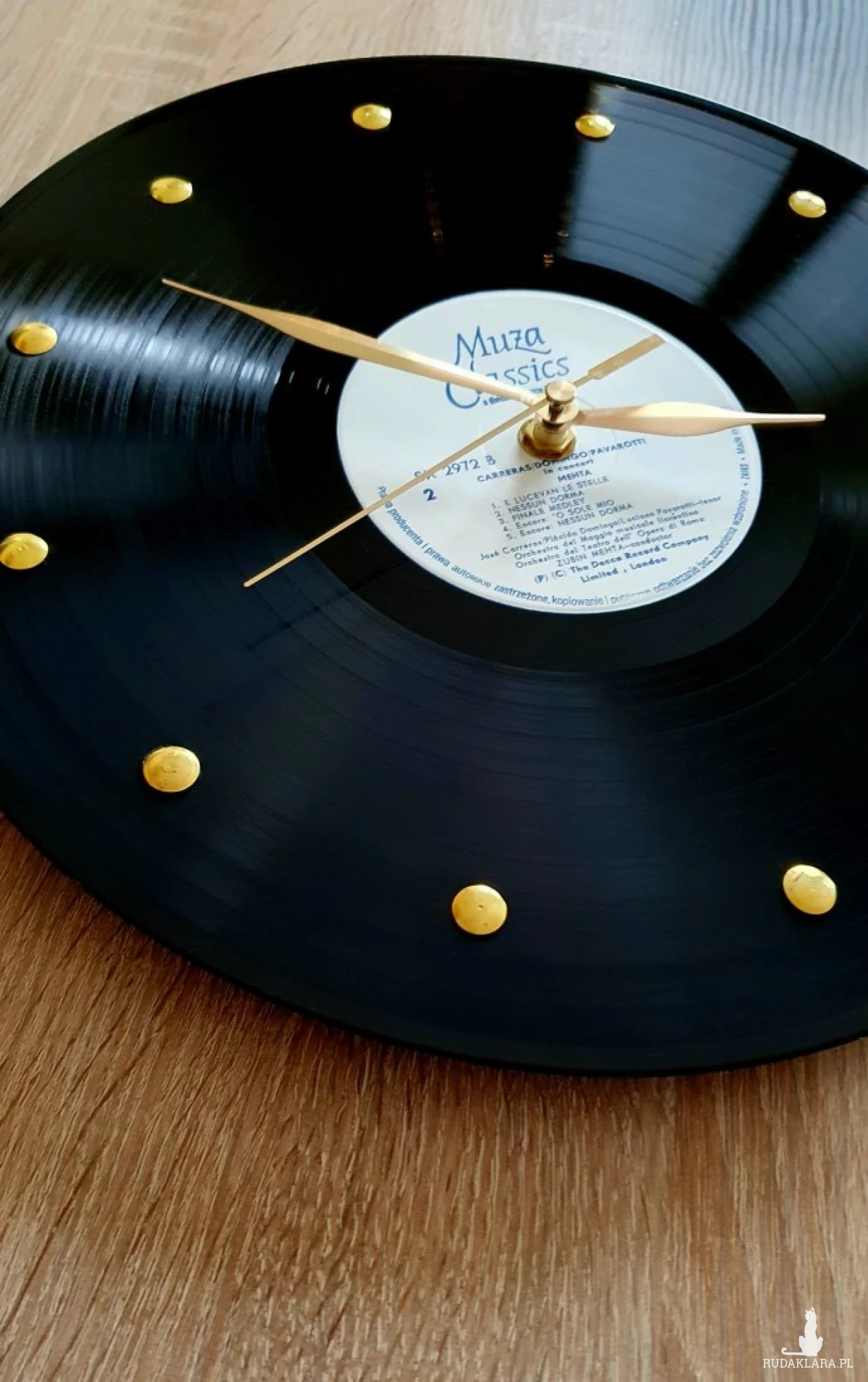 Muzyczny zegar ścienny wykonany z prawdziwej płyty winylowej pochodzącej z rodzinnej kolekcji. Wielka gratka dla melomanów oraz wielbicieli winyli!