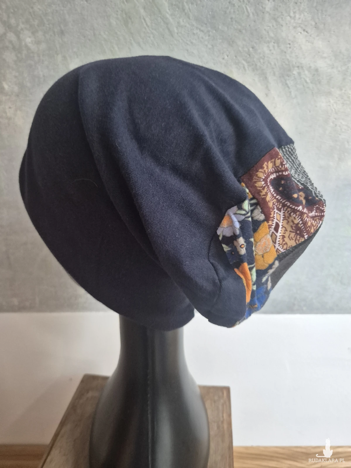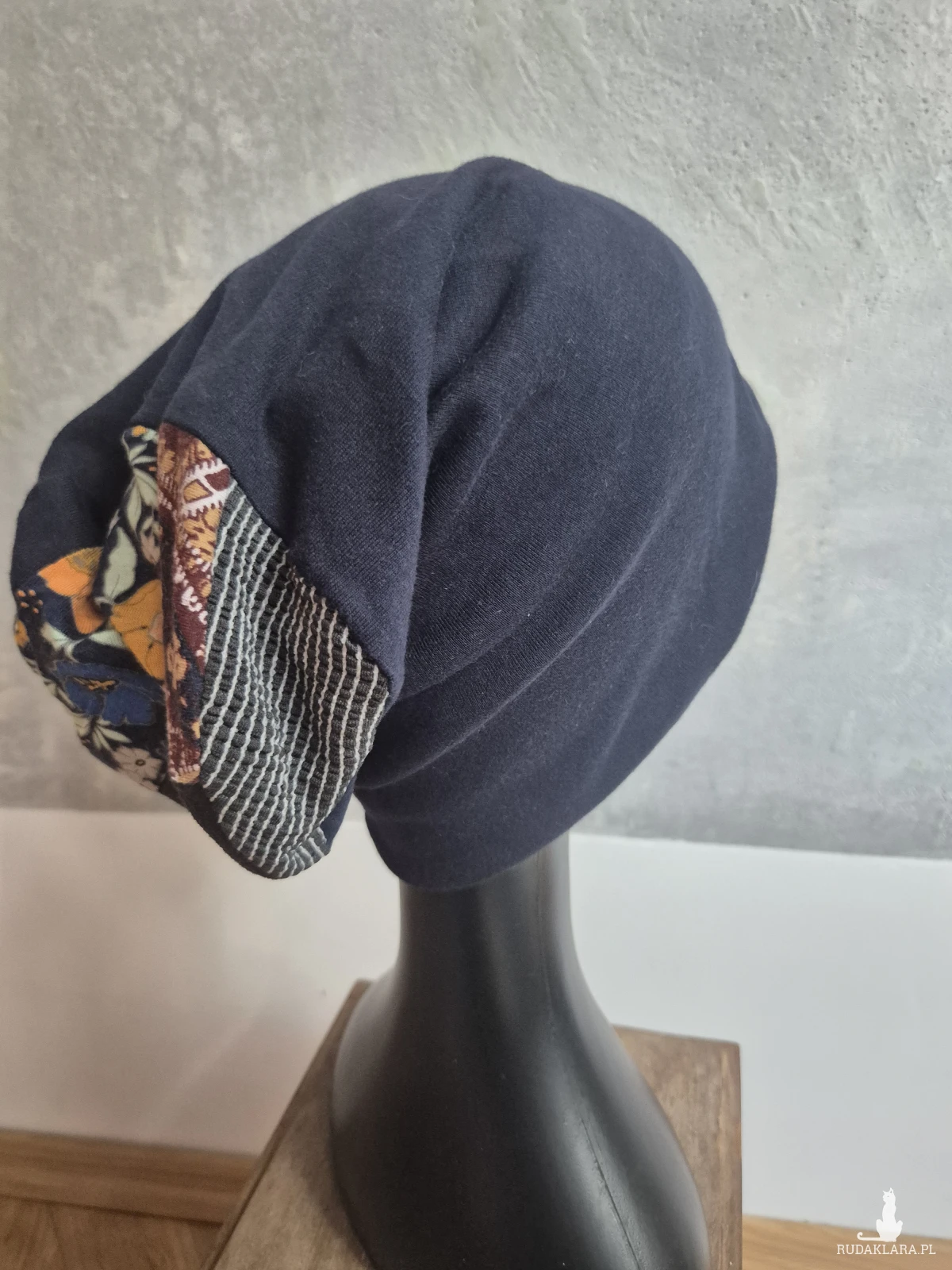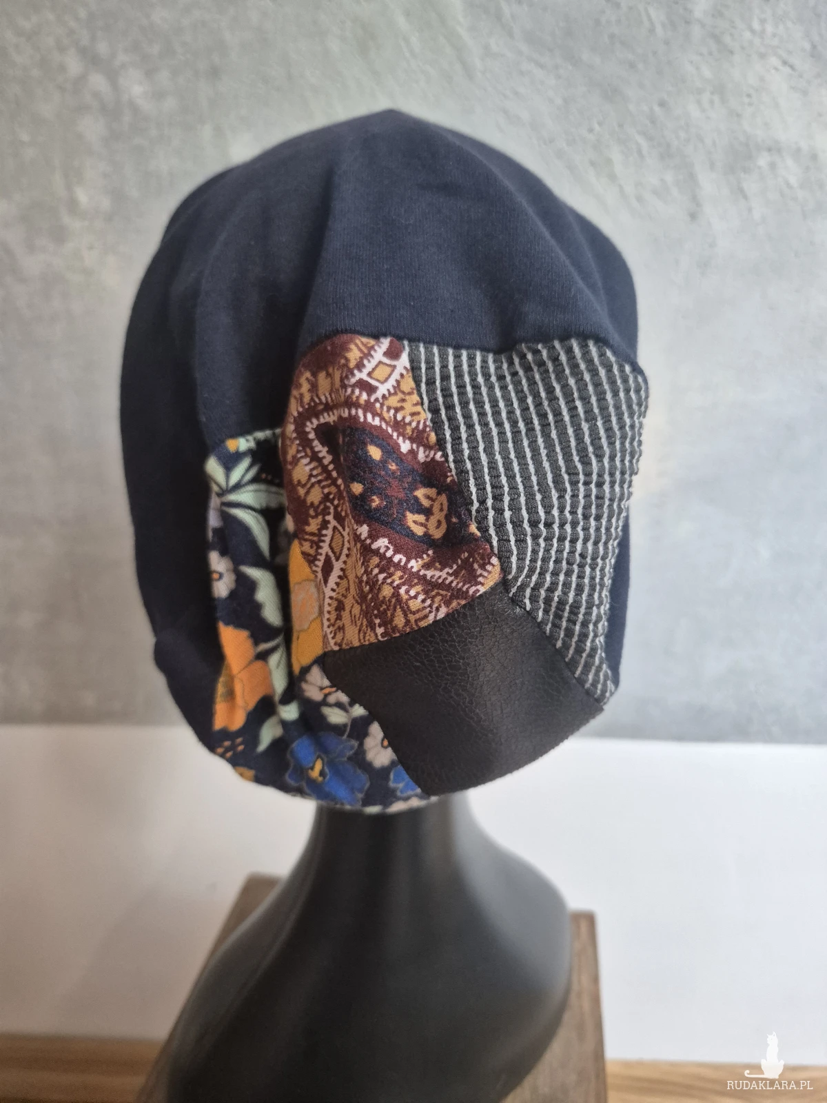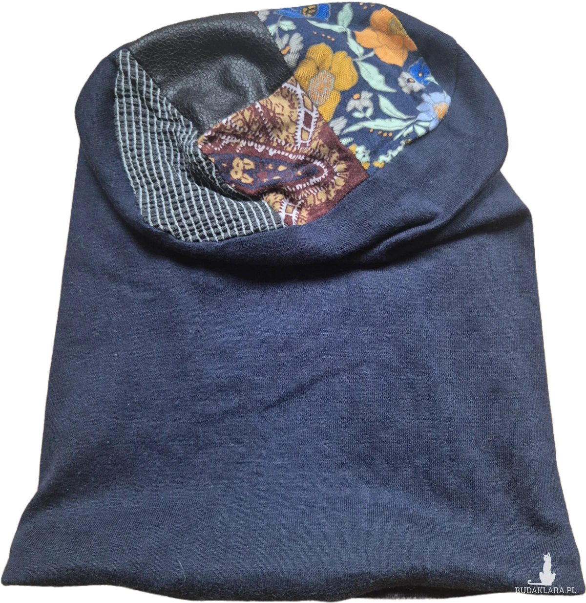 Czapka granatowa,gora  patchworkowa na podszewce fantastycznie się nosi świetna na codzienne noszenie rozmiar M polecam box p1