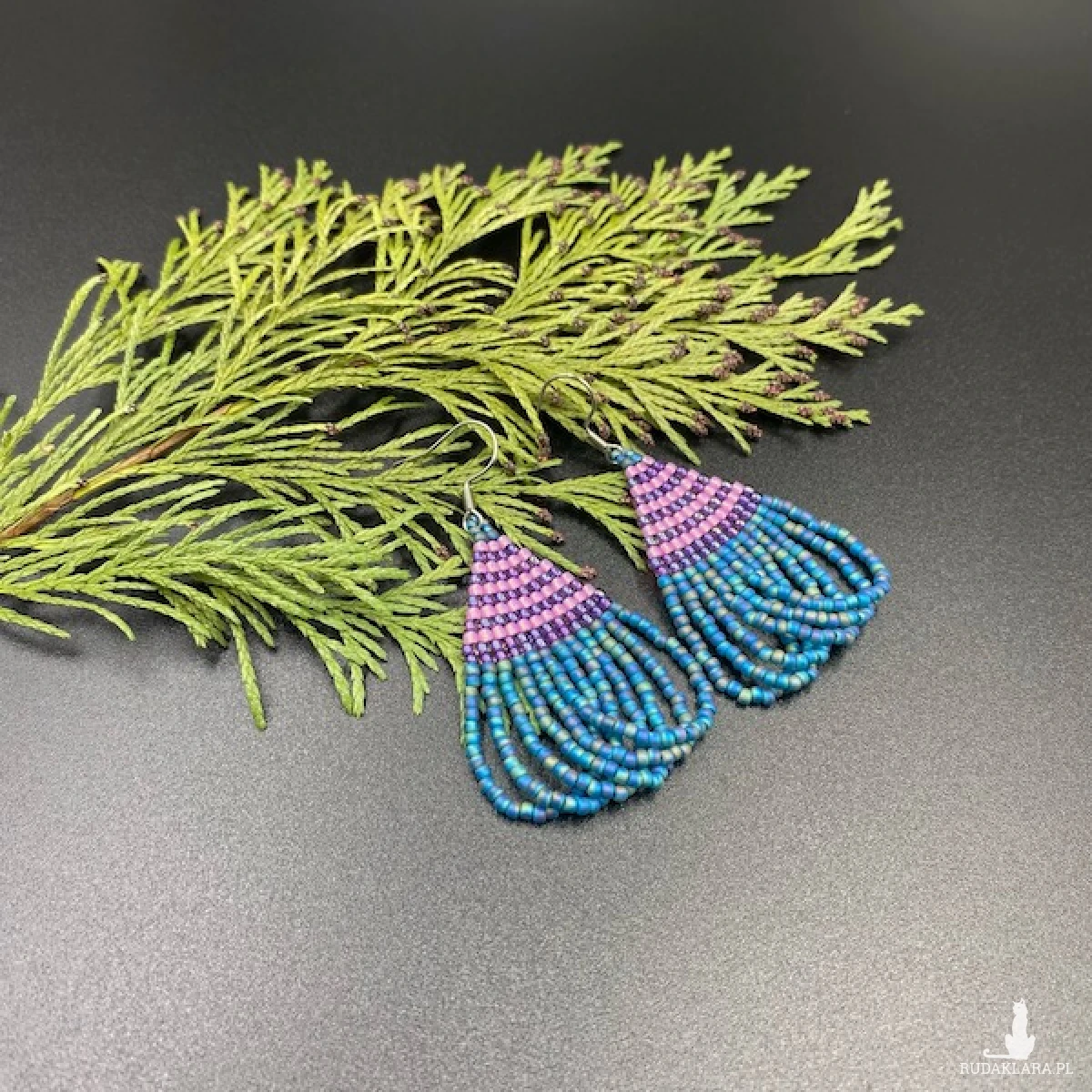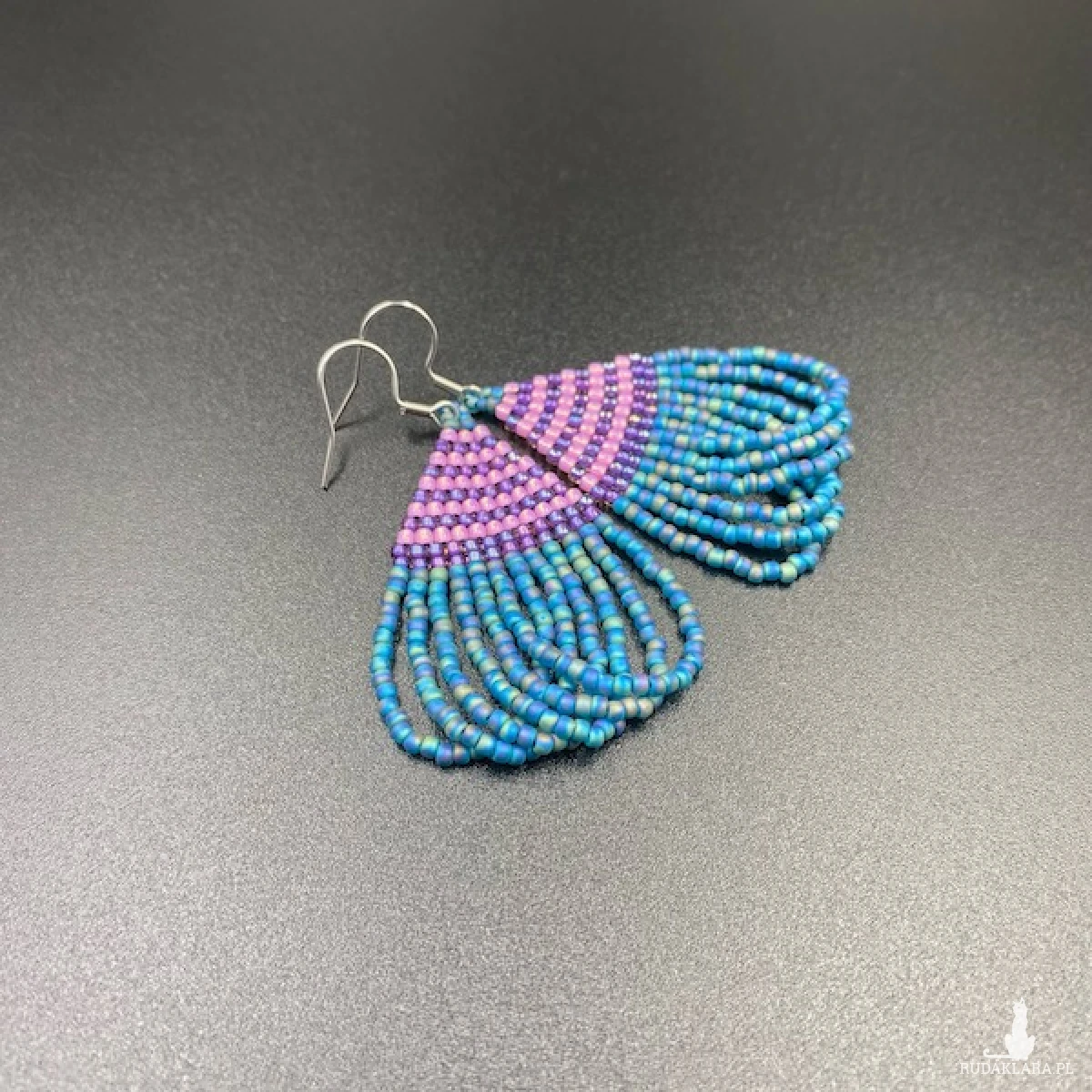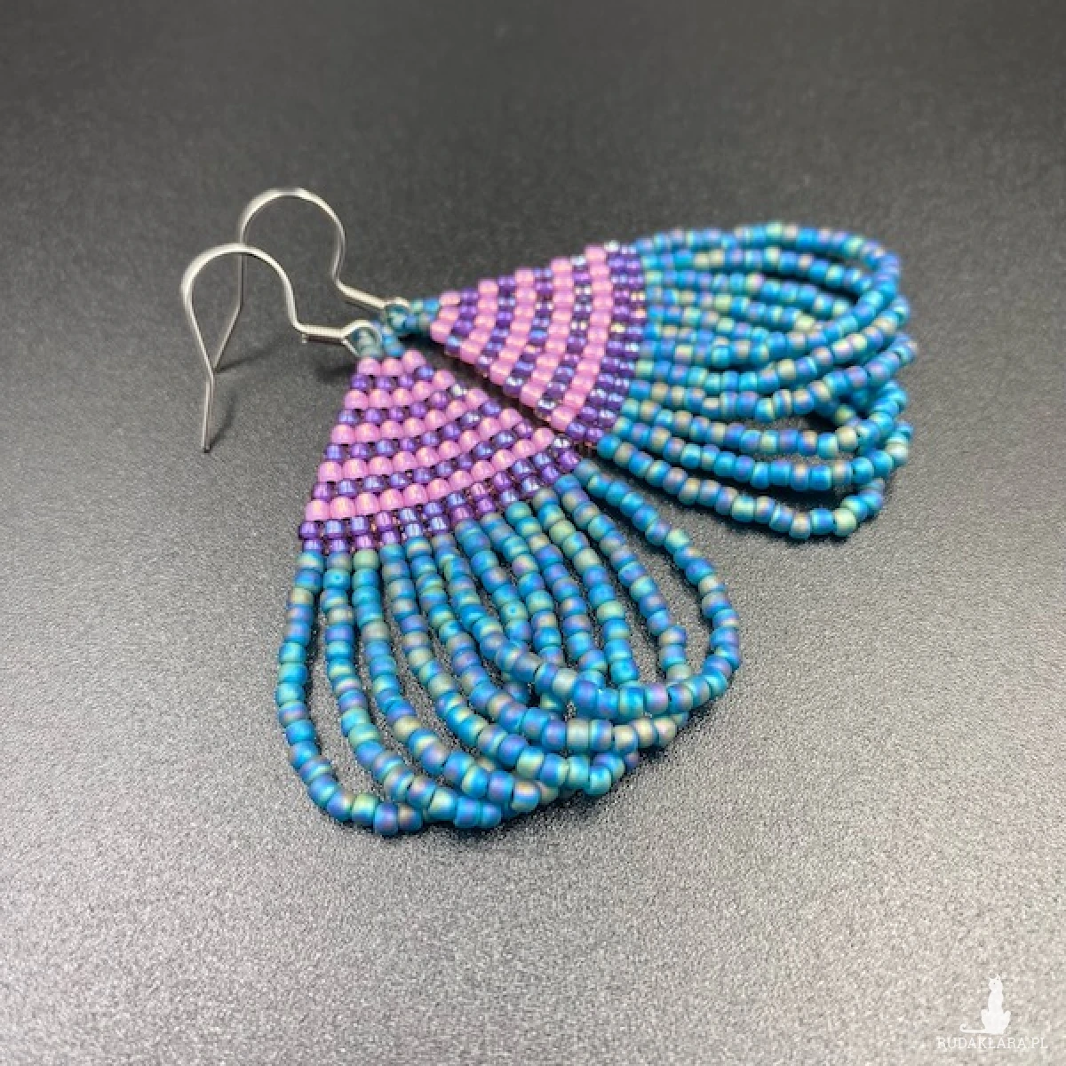Koralikowe kolczyki wykonane w górnej części ściegiem cegiełkowym, dolna część to ozdobne pętelki. W 100% utkane ręcznie z koralików TOHO 11. Każdą pracę wykonuję bardzo starannie.