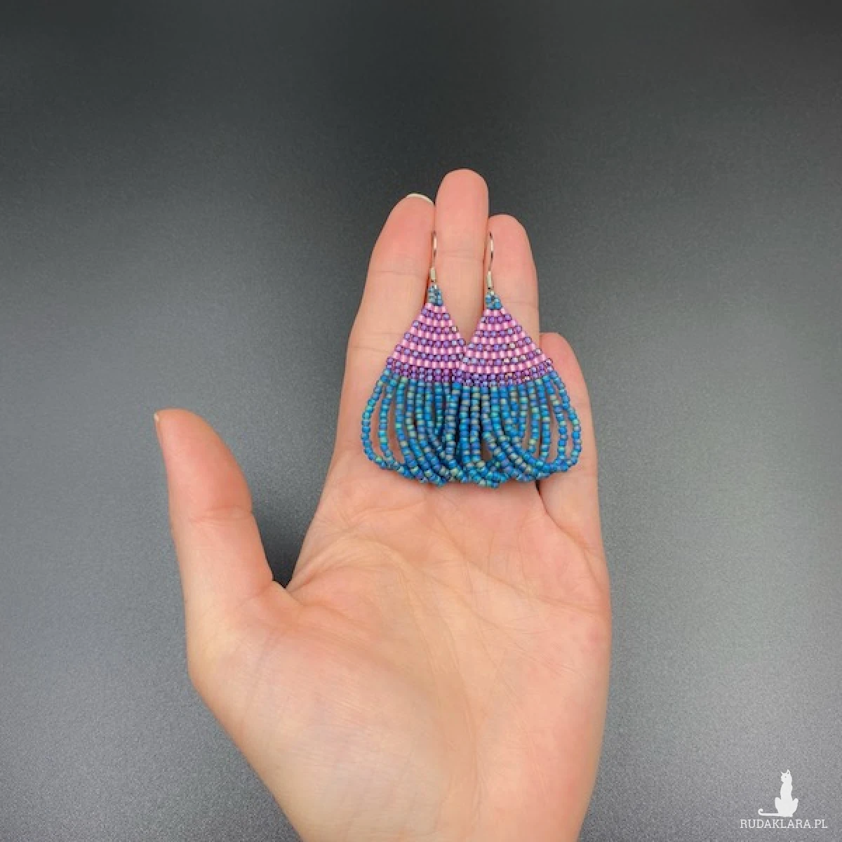 Kolory kolczyków: morski, różowy, fioletowy.