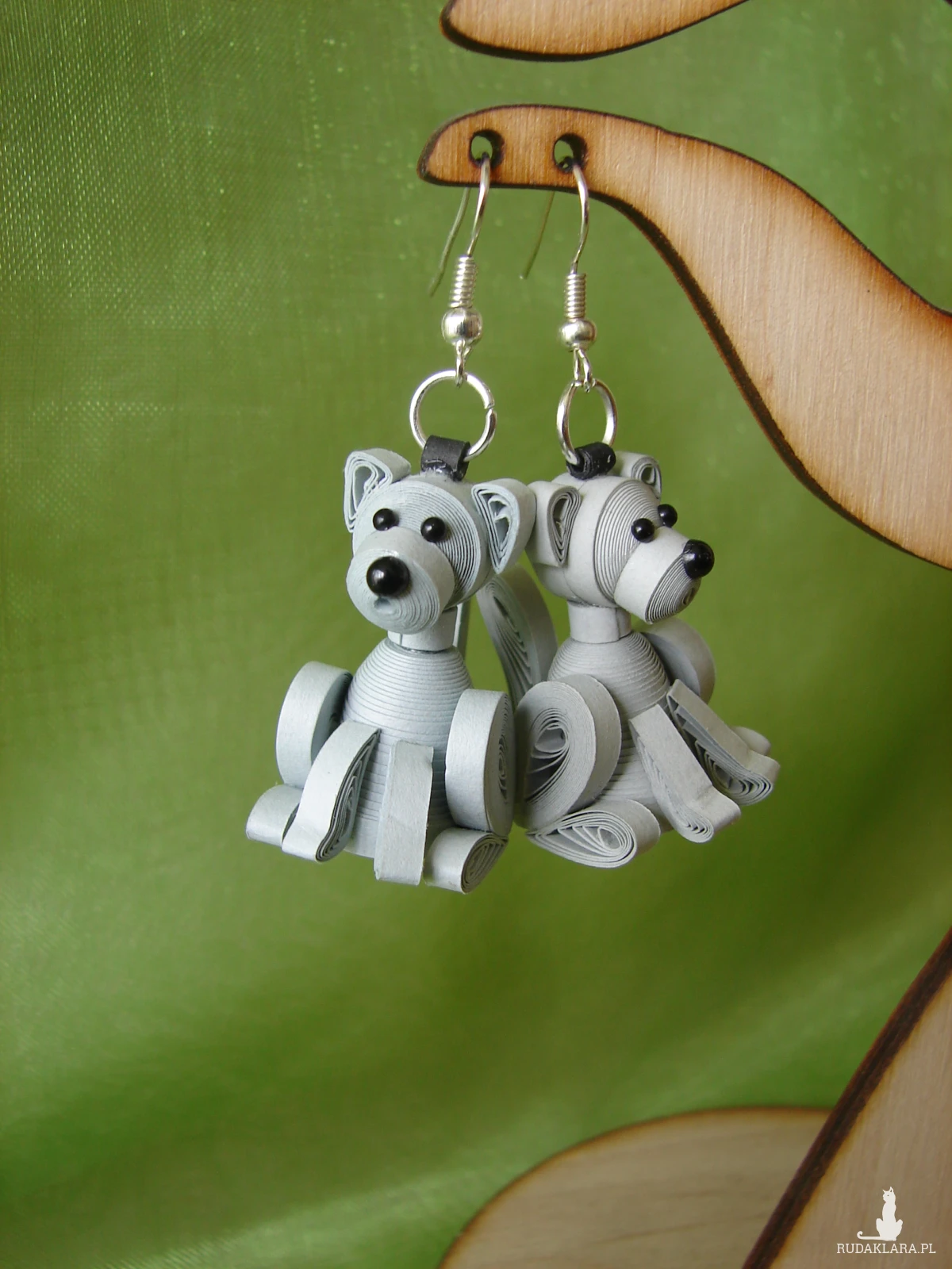 Kolczyki wykonane ręcznie z papieru metodą quilling, zabezpieczone i utwardzone lakierem bezbarwnym, więc nie chłoną wilgoci atmosferycznej.