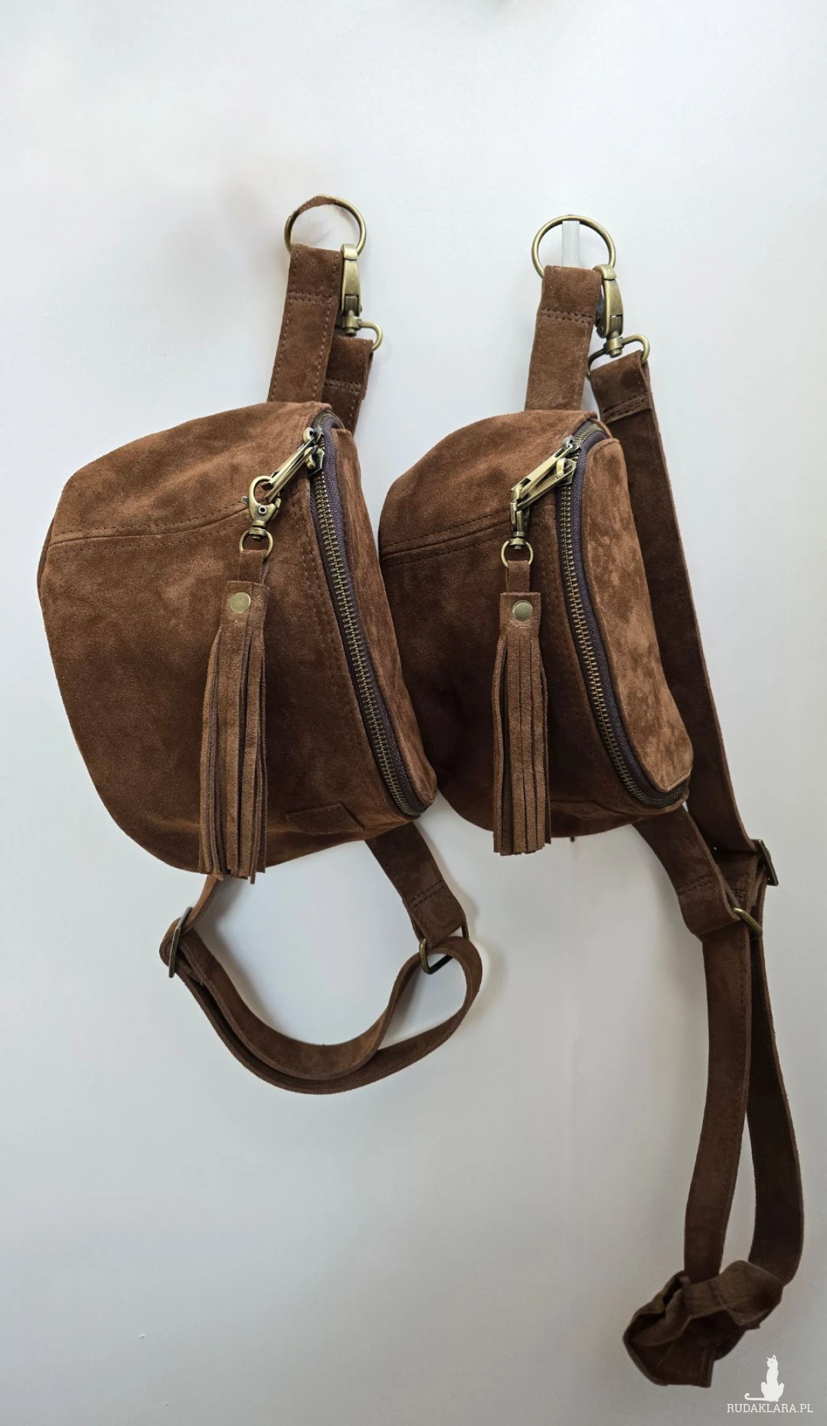 Wykonana z miękkiej skóry zamszowej w oryginalnym brązowym kolorze tobacco.