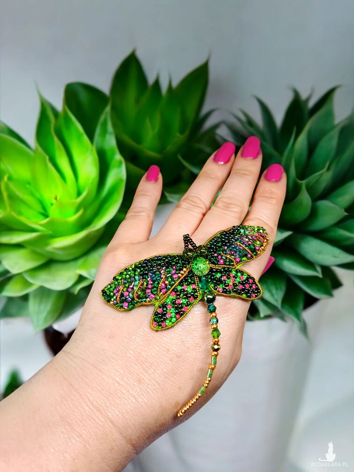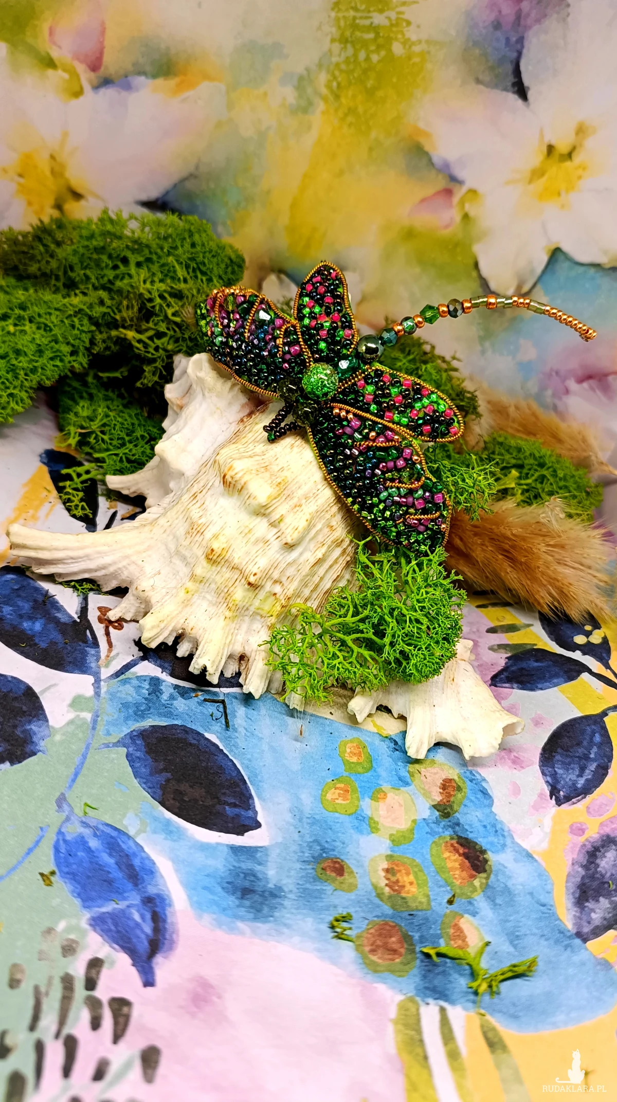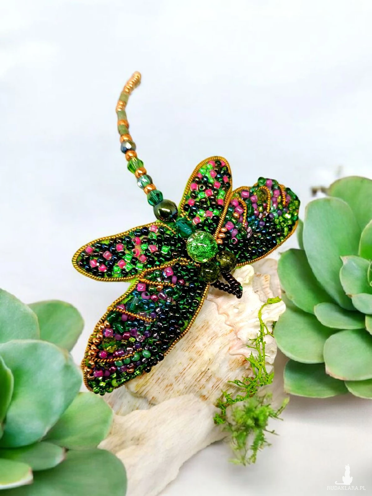 Przenieś się do świata natury i kolorów z tą niezwykłą broszką w kształcie ważki. Ręcznie wykonana z dbałością o każdy detal, łączy w sobie lekkość skrzydeł z blaskiem koralików i artystycznym wyczuciem barw.