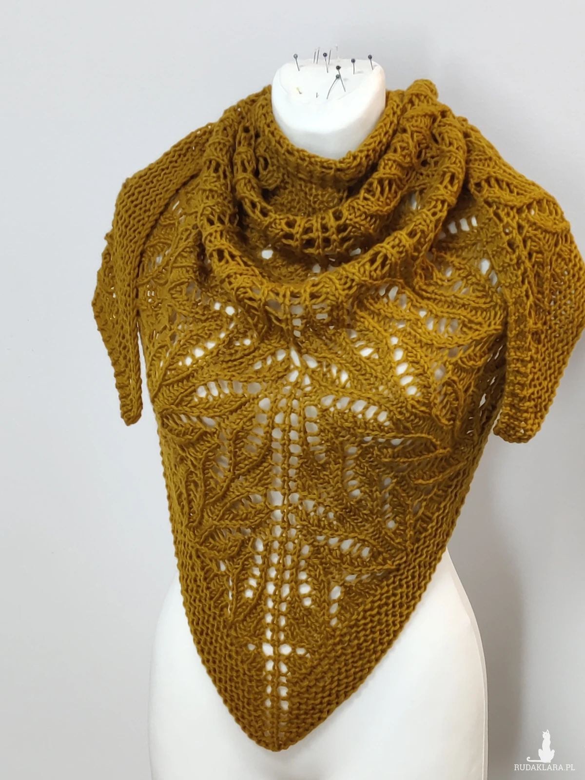Chusta damska ręcznie zrobiona w kolorach ochry, musztardy.