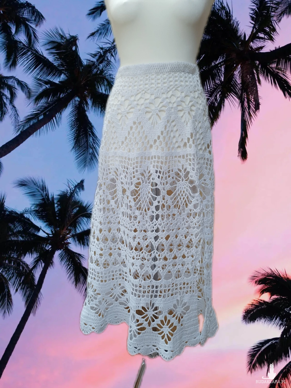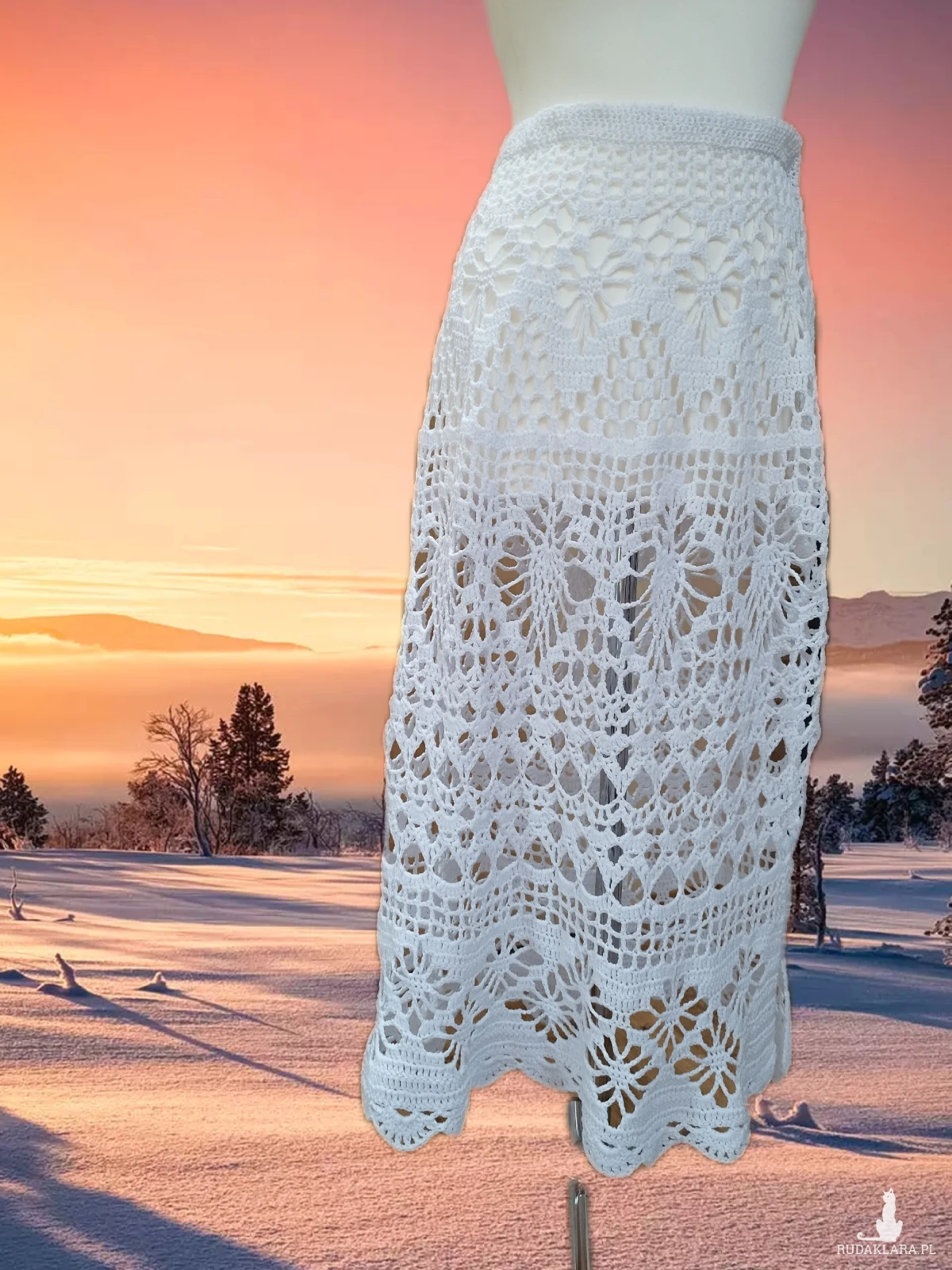 Biała spódnica zrobiona na szydełku, lekka na lato. Jest możliwość zamówienia innego koloru i rozmiaru. Cena do uzgodnienia