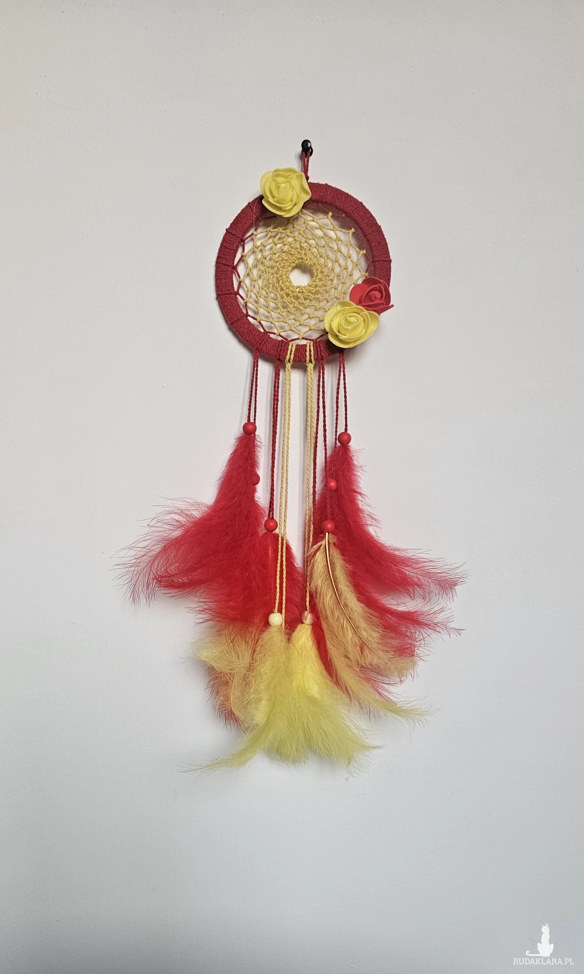 czerwono-żółty łapacz snów na obręczy 12 cm