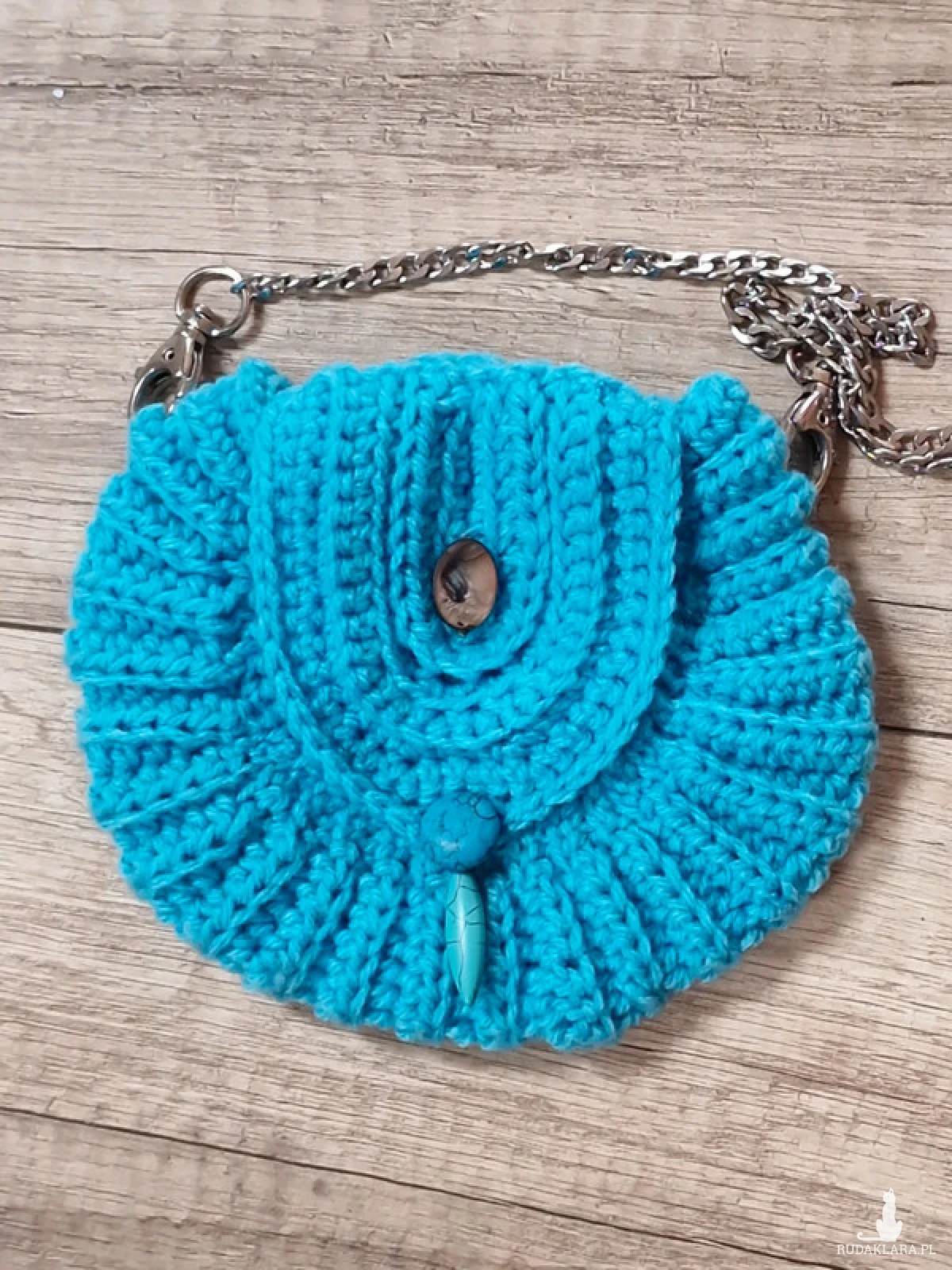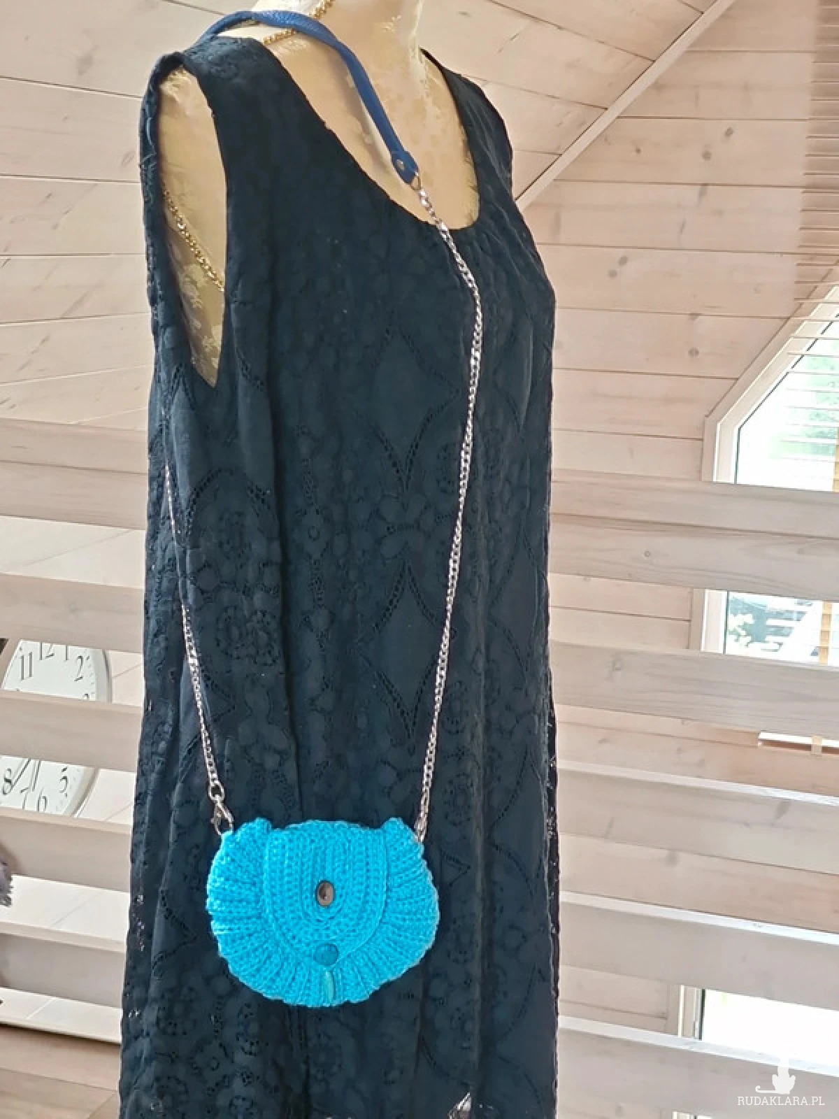Torebka Oreo handmade w kolorze turkusowym. Unikatowa, zrobiona z włóczki z dodatkami łańcuszek z elementem skórzanym i koraliki turkusy . Doskonała dla osób ceniących ręcznie robione przedmioty.