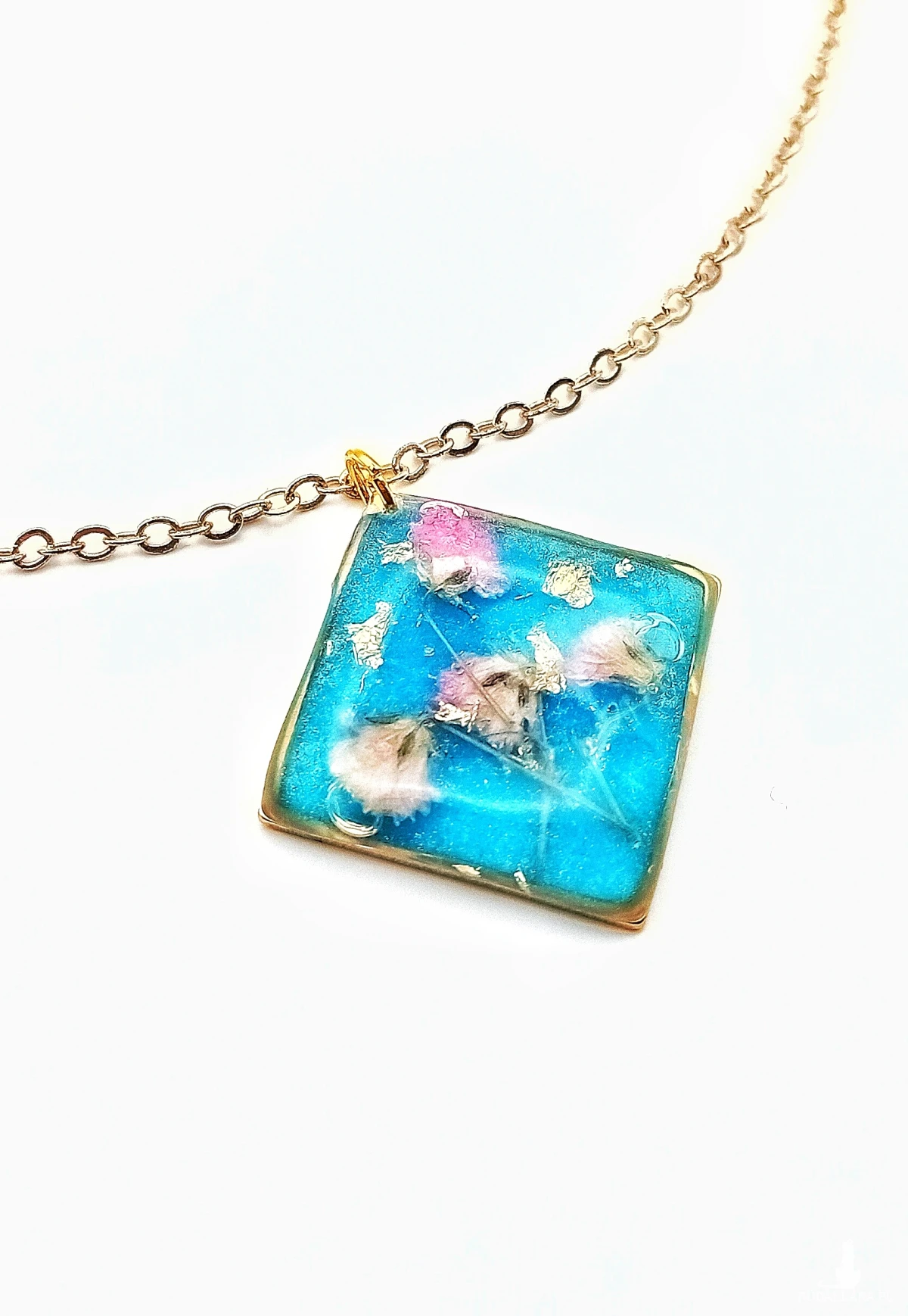 zawieszka handmade, biżuteria z żywicy, zawieszka z kwiatami, prezent dla niej, personalizowana biżuteria, stal chirurgiczna biżuteria, naturalna biżuteria, boho zawieszka, rękodzieło biżuteria