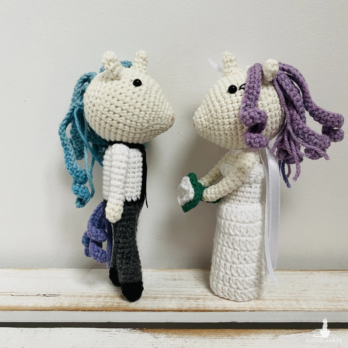 Młoda Para – jednorożce maskotki ręcznie robione na szydełku – idealny prezent ślubny