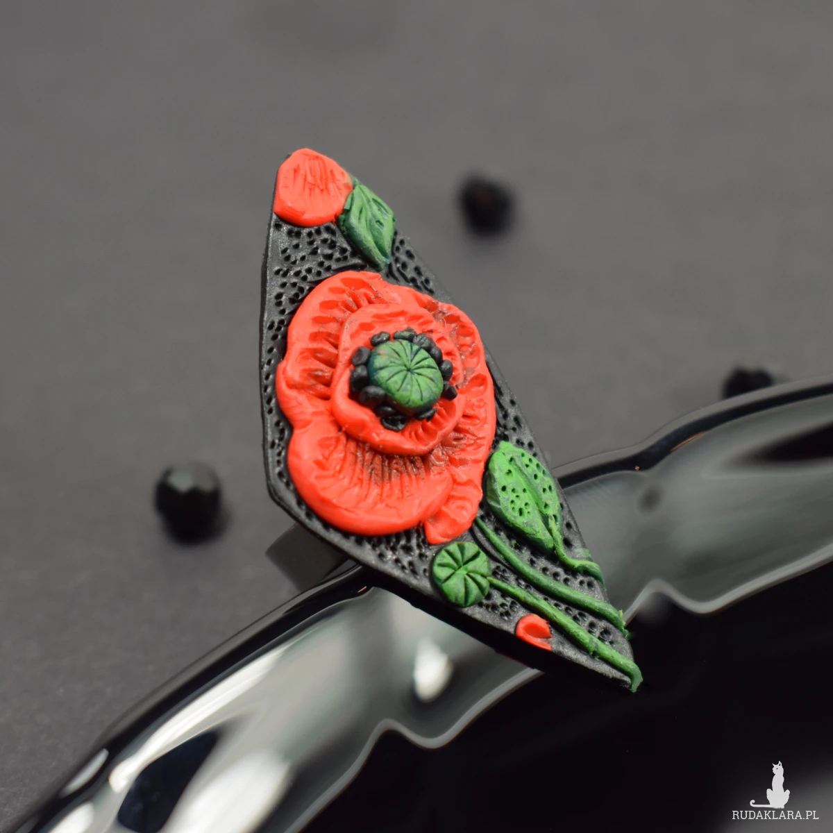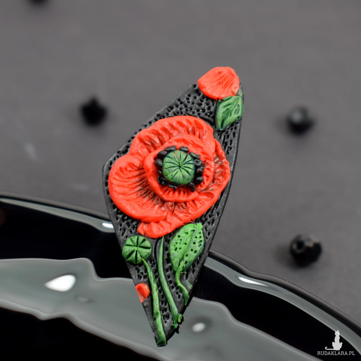 Ozdobny element z makiem wykonany został ręcznie z profesjonalnej glinki polimerowej.
