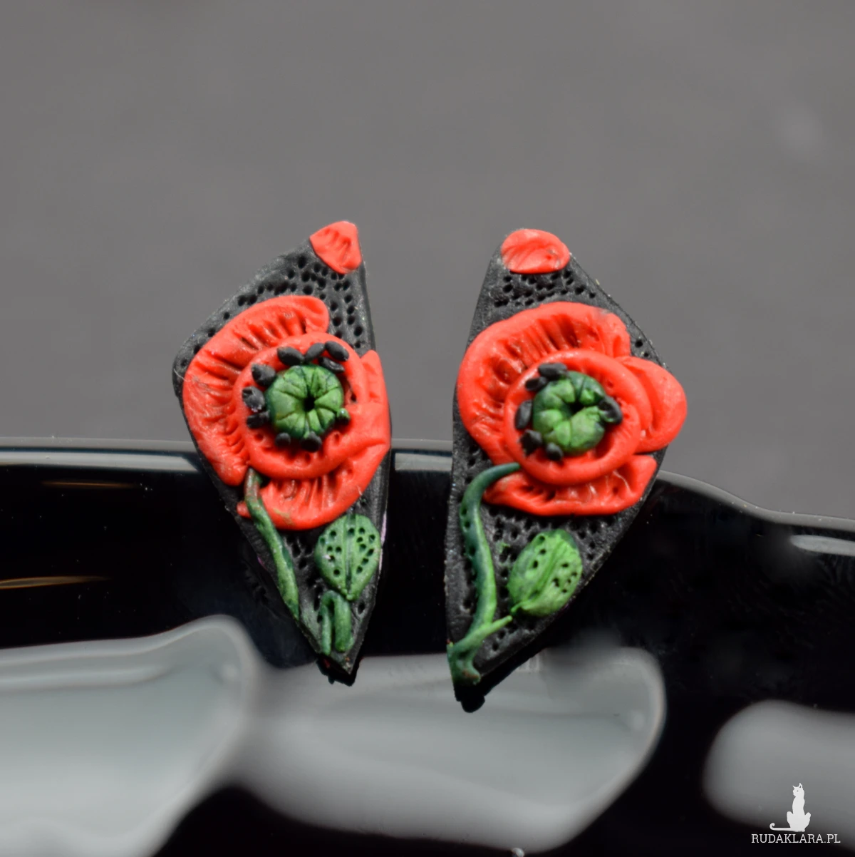 Wyjątkowy komplet biżuterii o asymetrycznym kształcie "czerwone maki".