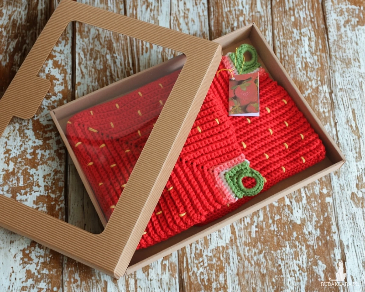 Ten produkt rękodzielniczy to połączenie dwóch funkcji: łapki kuchennej i rękawicy.