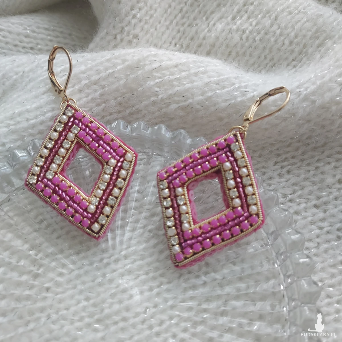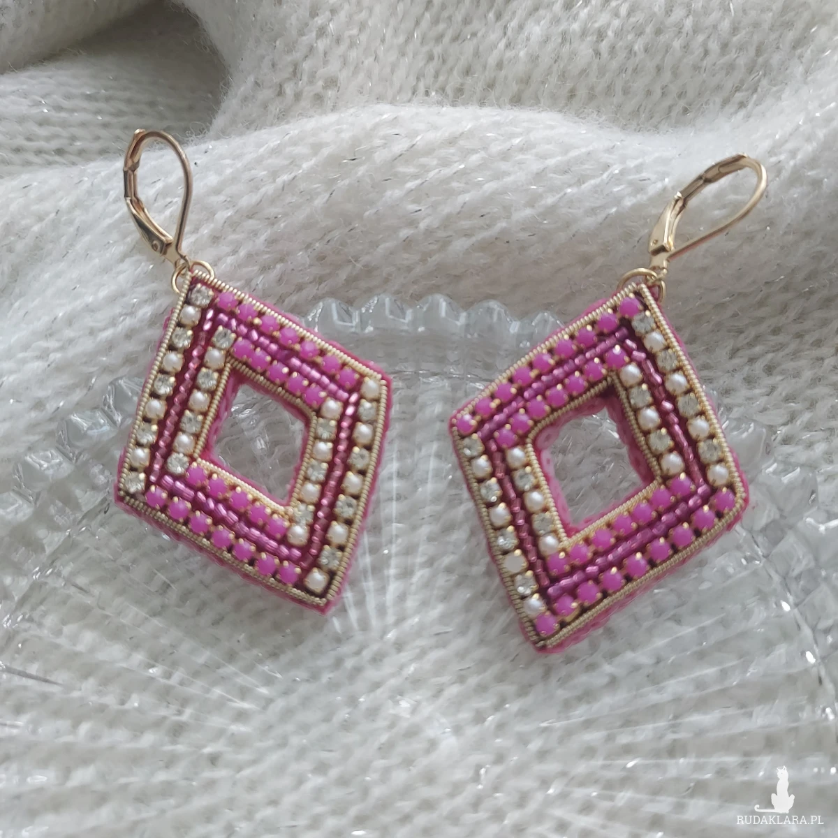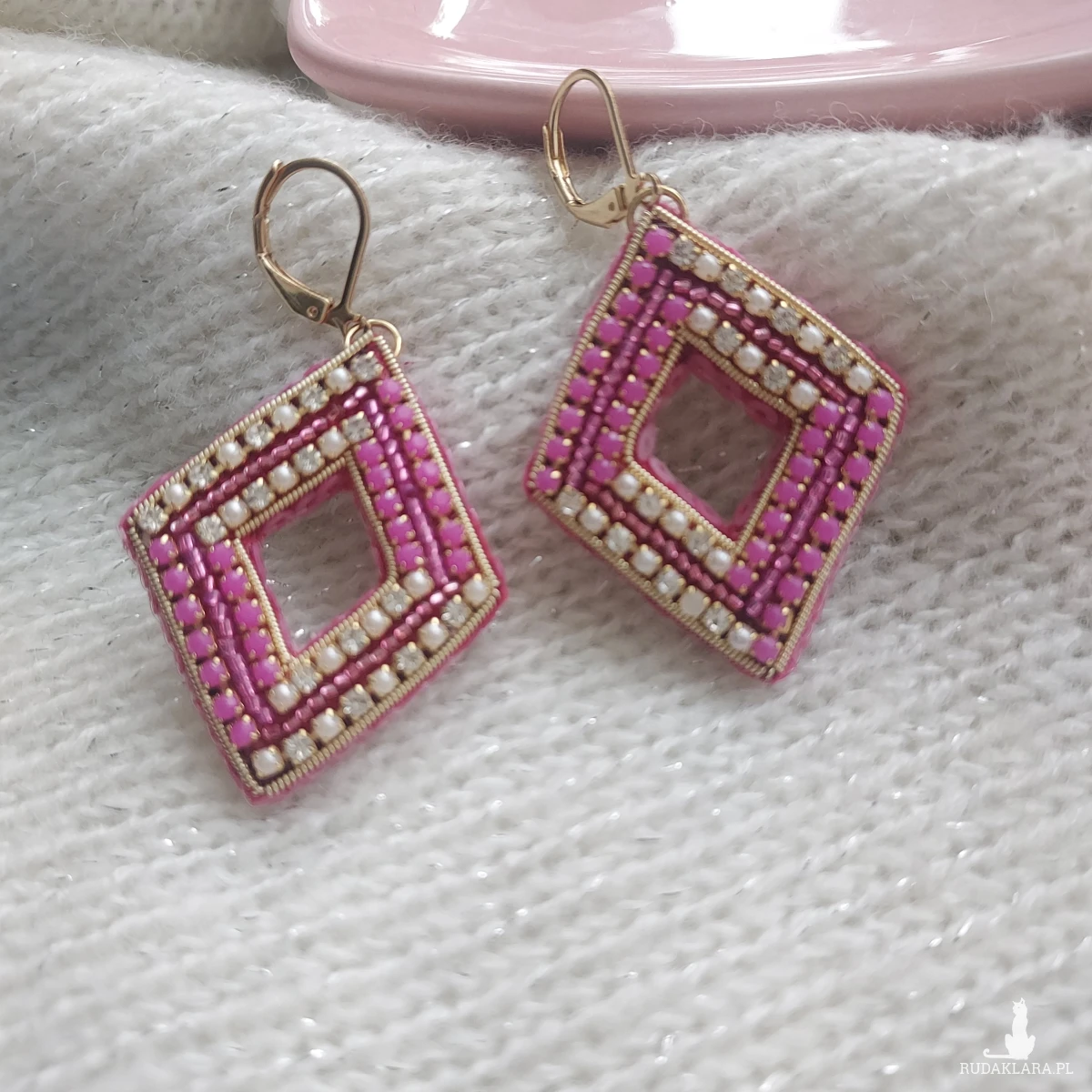 Kolczyki w kształcie rombu w odcieniach różu pięknie błyszczące w promieniach słońca przyciągną niejedno spojrzenie!