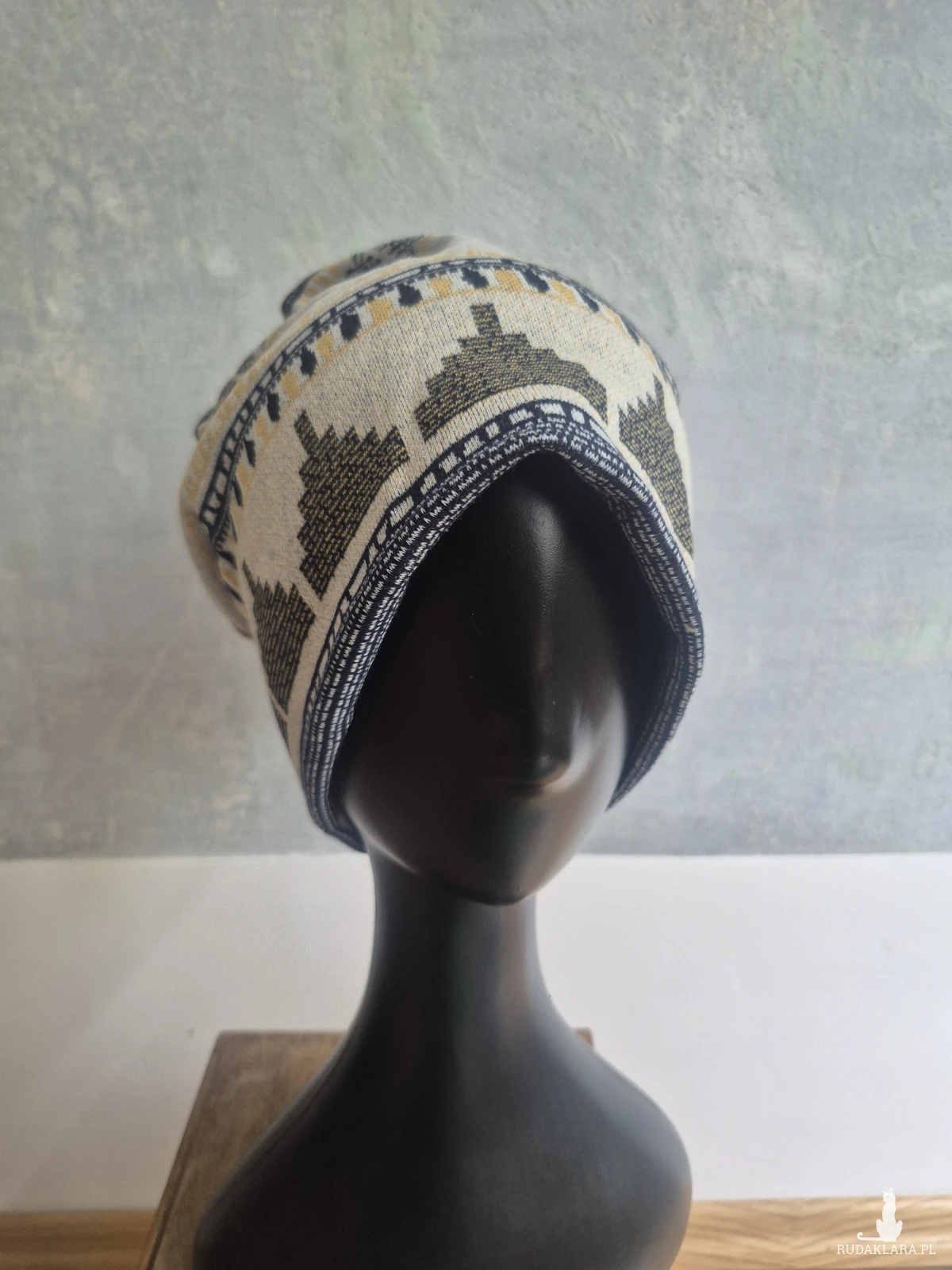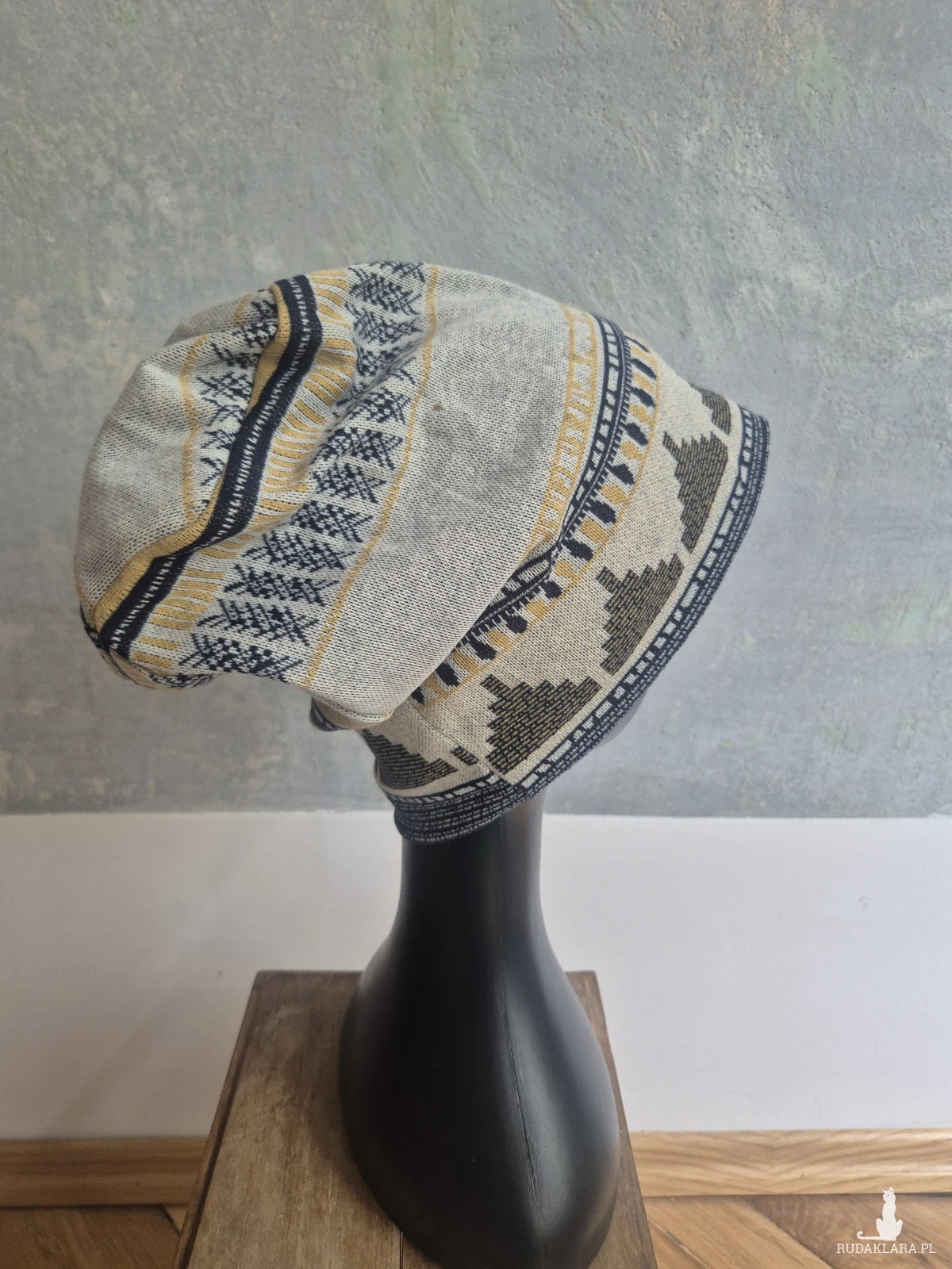 Czapka kobieca etno smerfetka fantastyczny materiał na podszewce rozmiar uniwersalny świetna na codzienne noszenie na rower na brak fryzury na poprawę nastroju nad morze Box 44