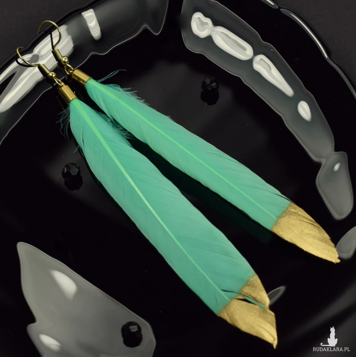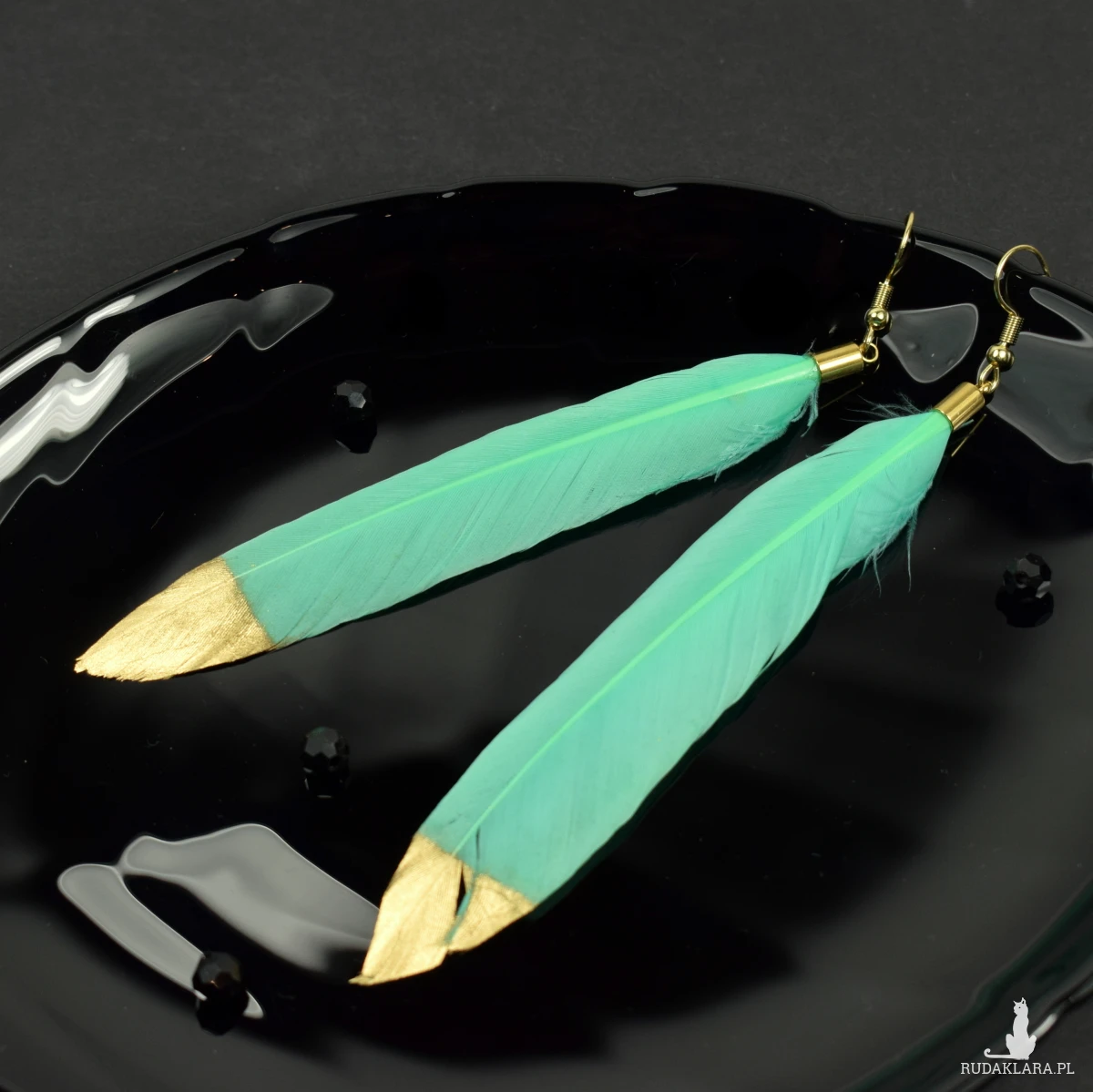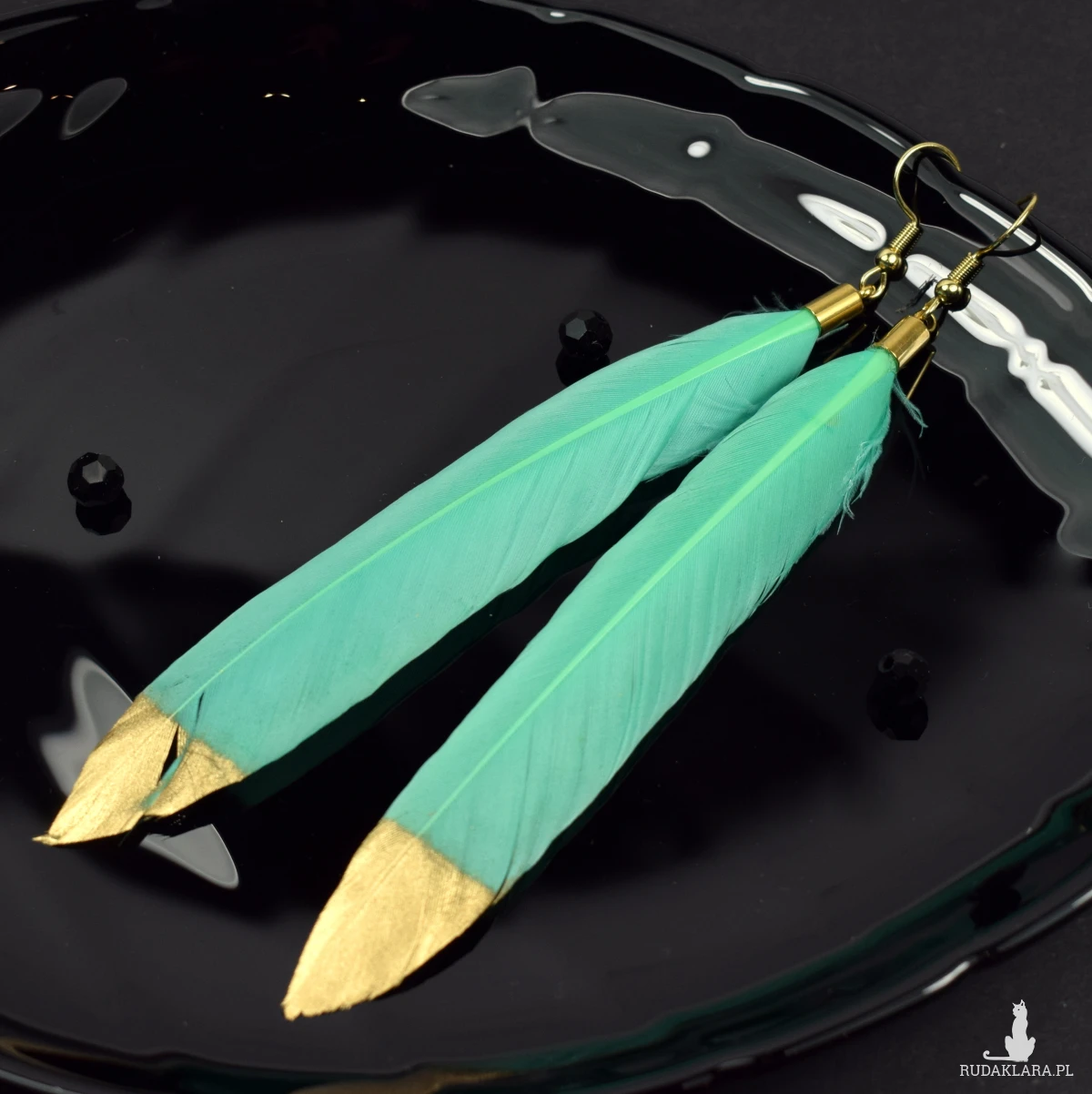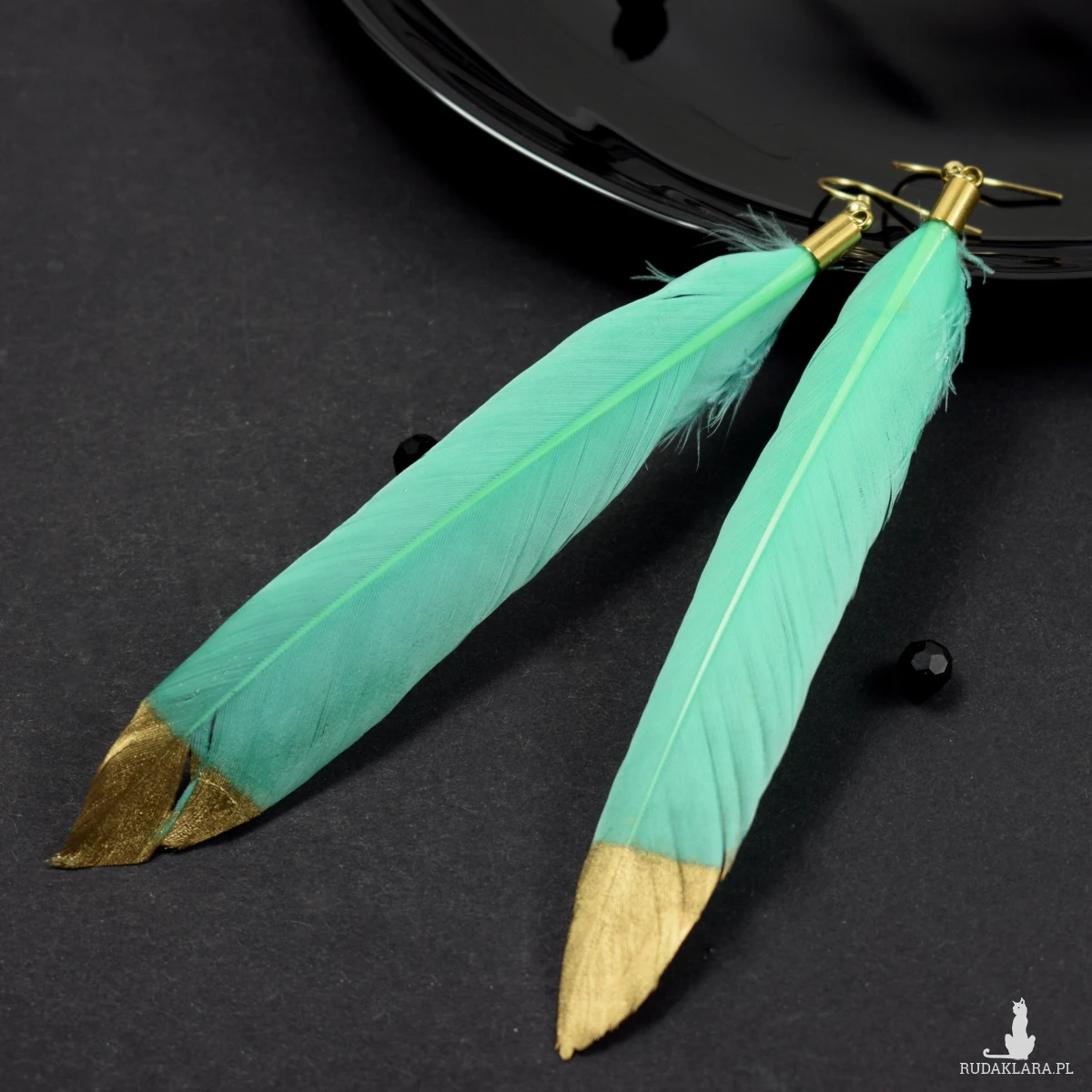 Zjawiskowe kolczyki z delikatnymi piórami w miętowym odcieniu z