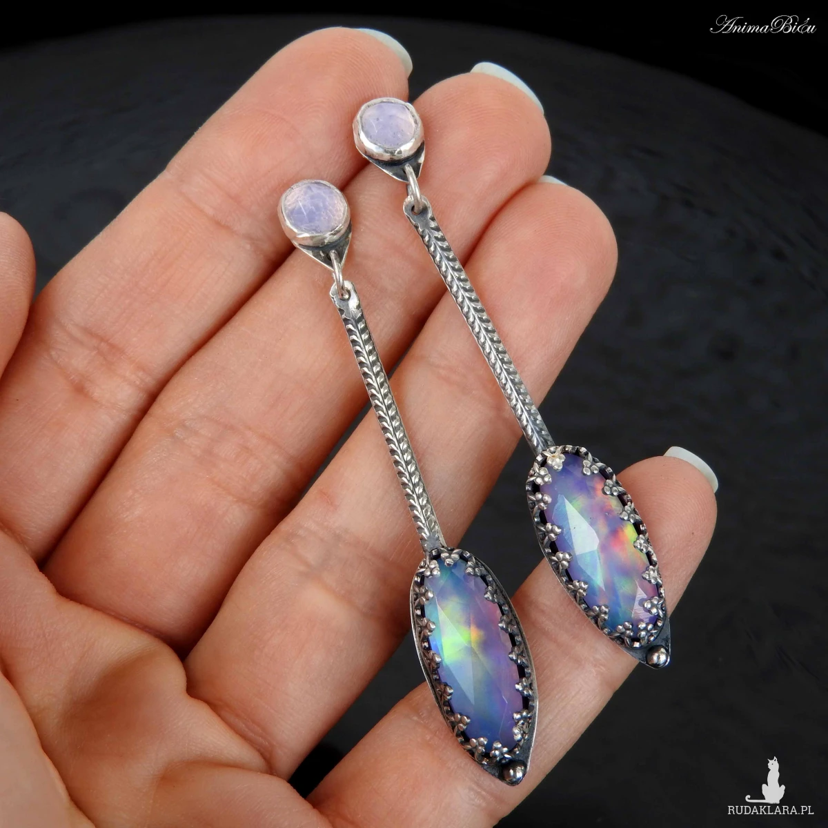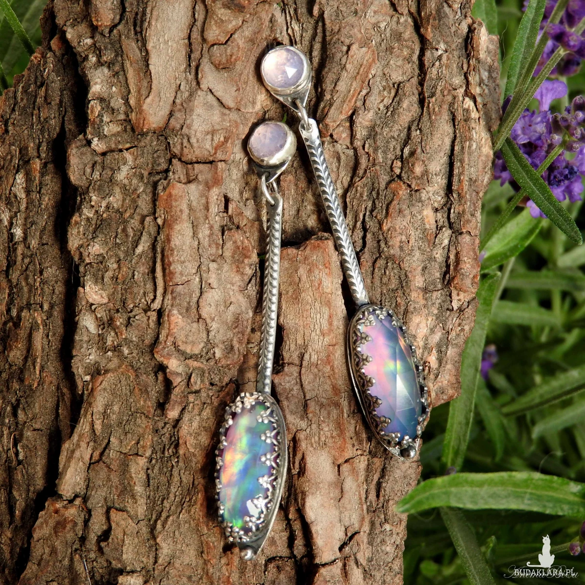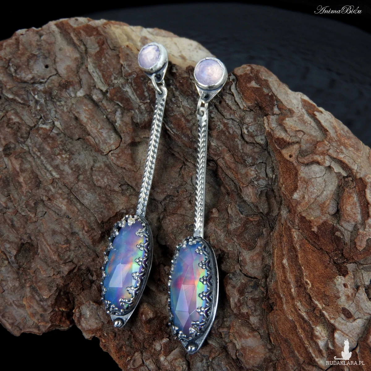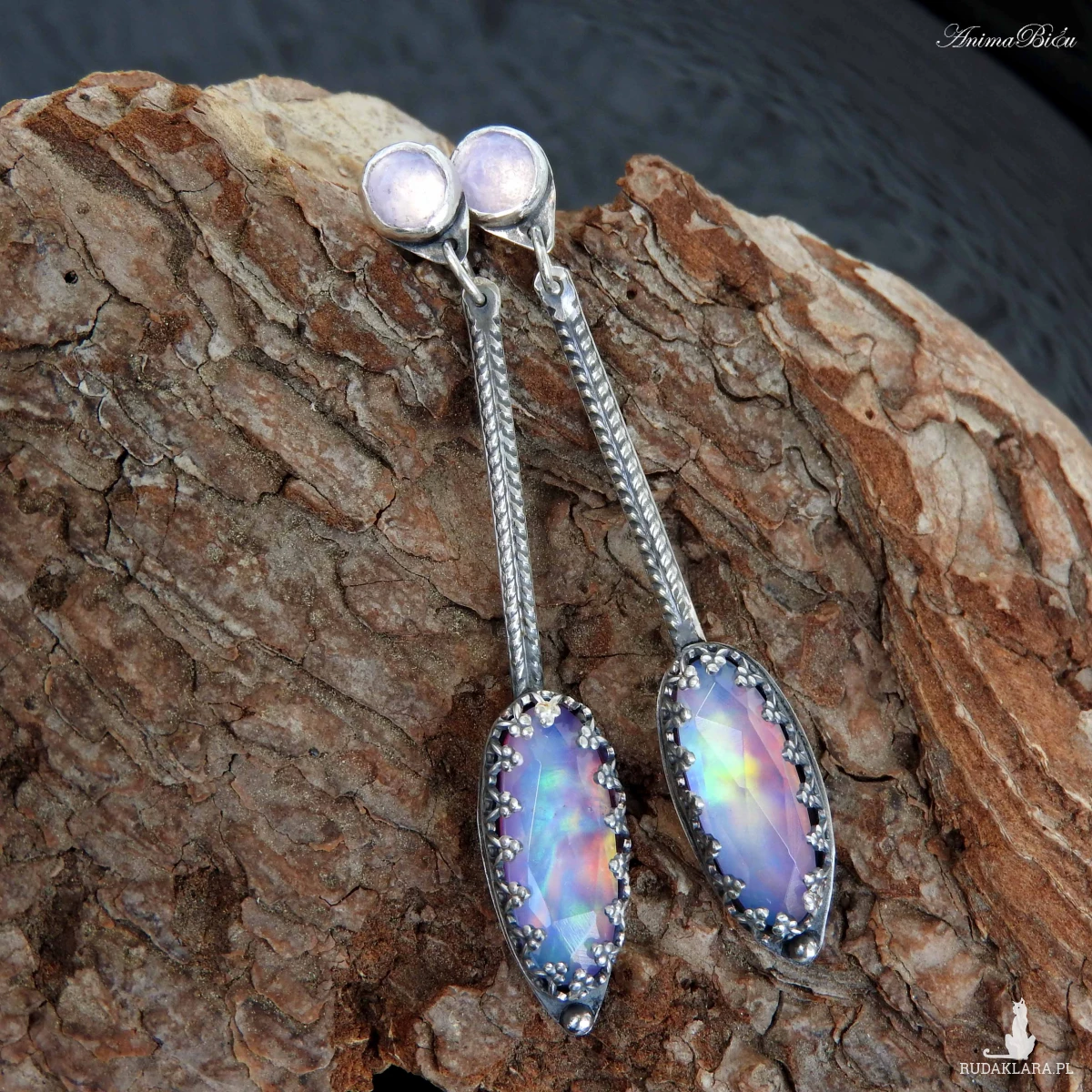 Kolczyki srebrne z opalem aurora i kwarcem lawendowym.