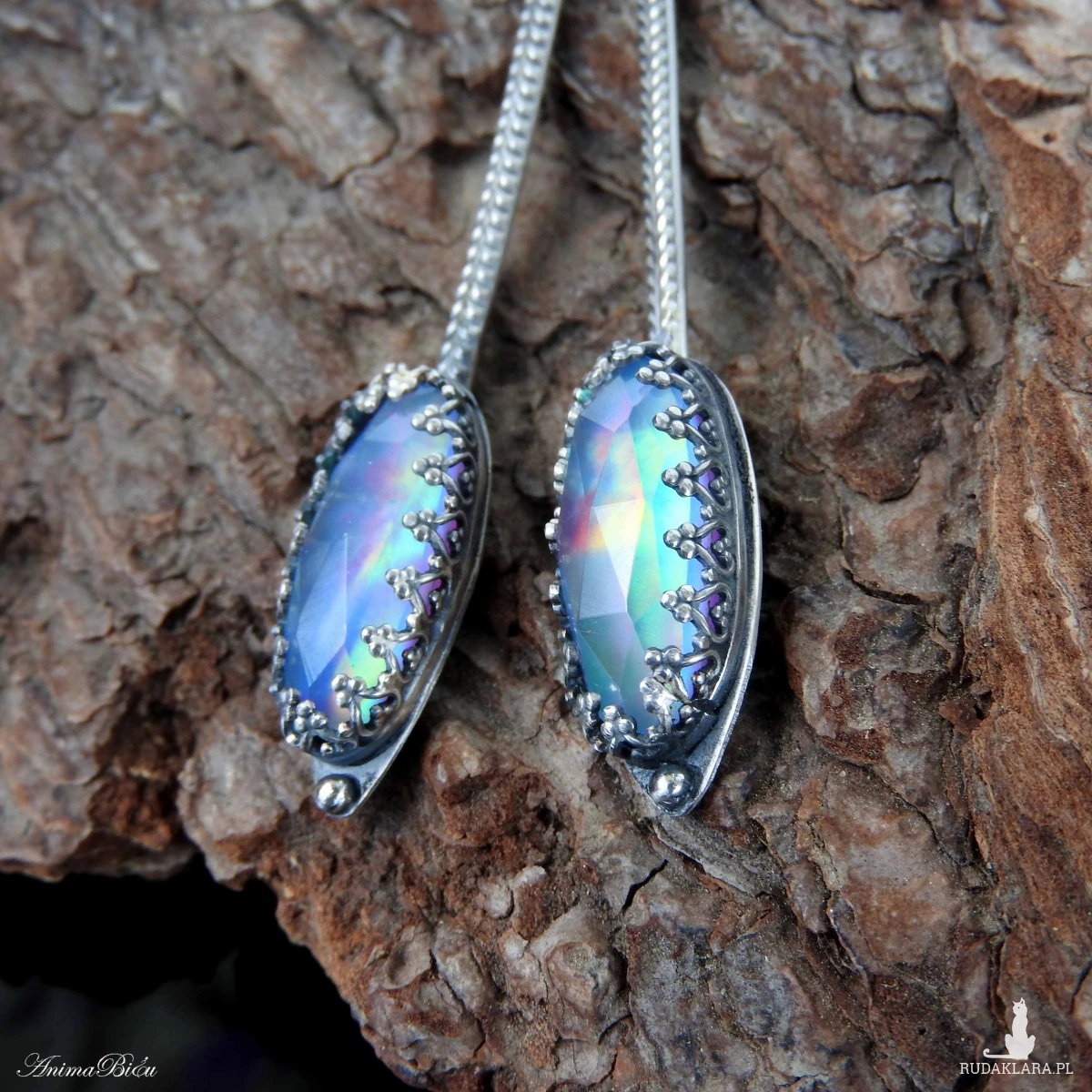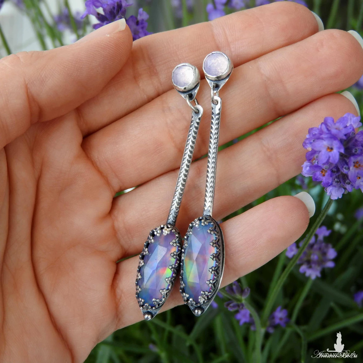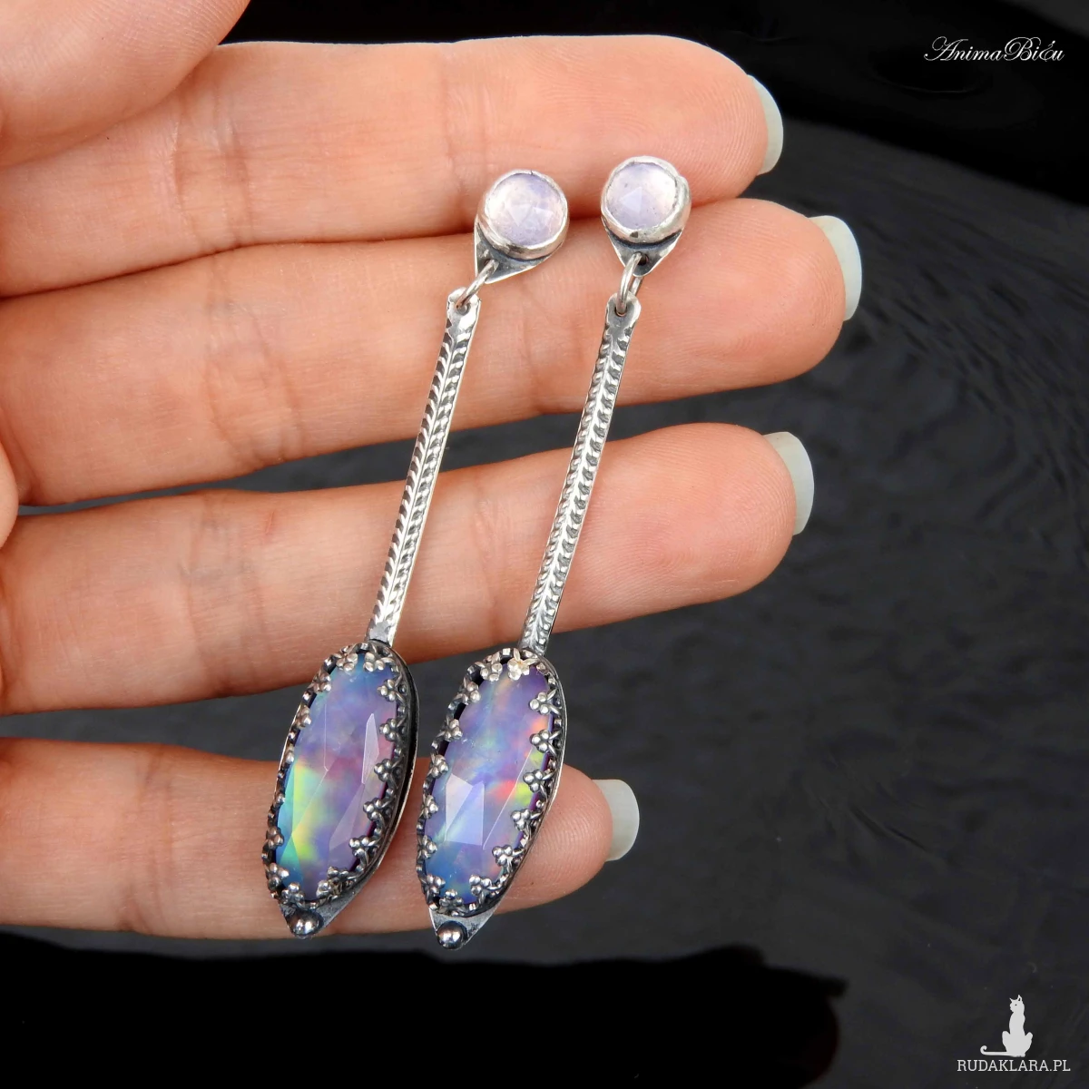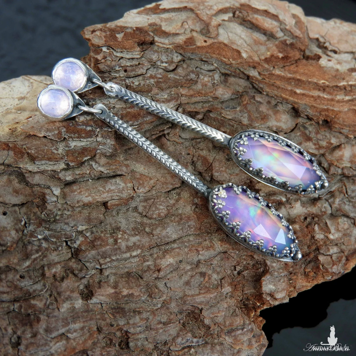 Kolczyki srebrne z opalem aurora i kwarcem lawendowym.