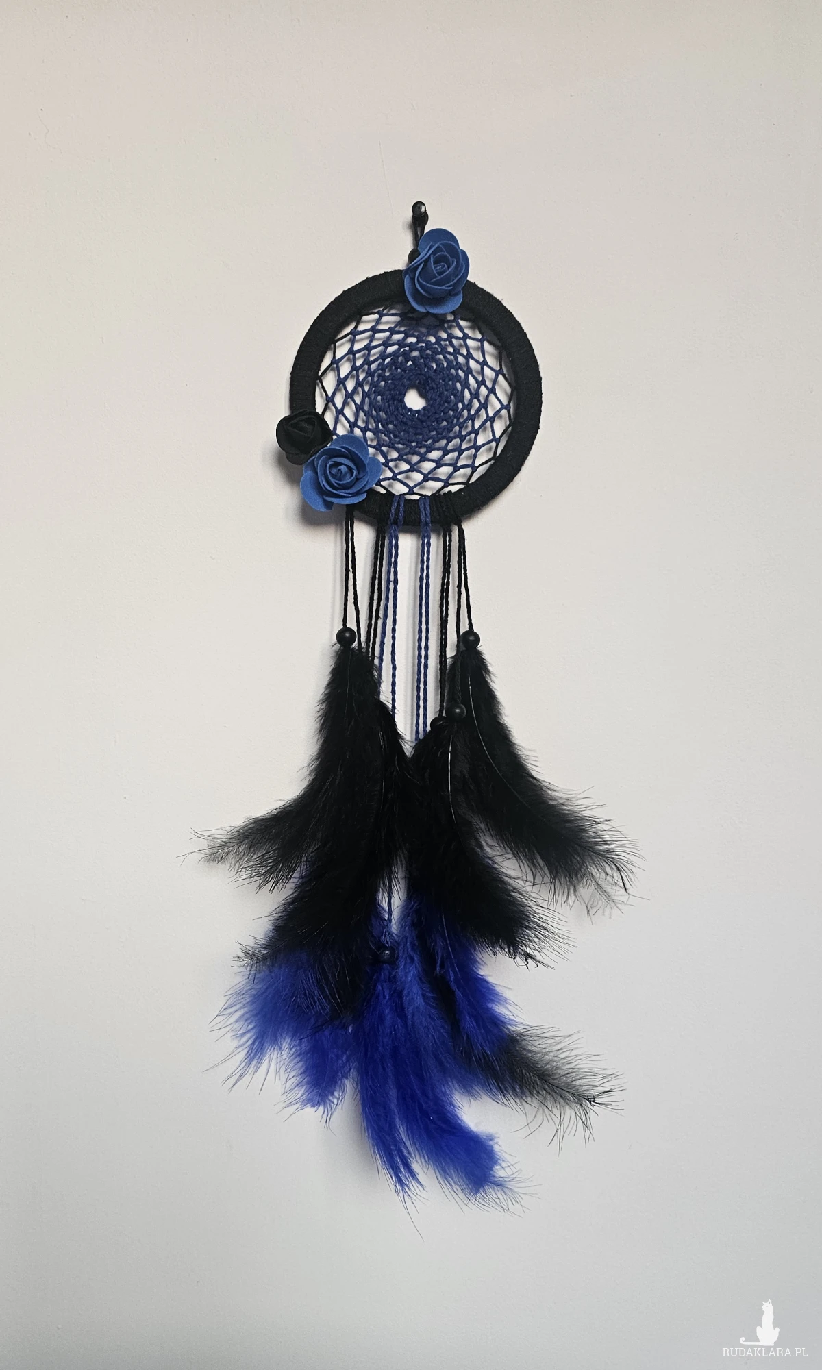 czarno-granatowy łapacz snów na obręczy 12 cm