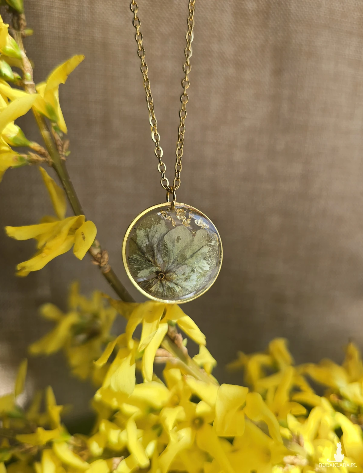Złota zawieszka złoty wisiorek naszyjnik żywica z żywicy kwiaty z kwiatami retro naturalna dziewczęca kobieca hortensja