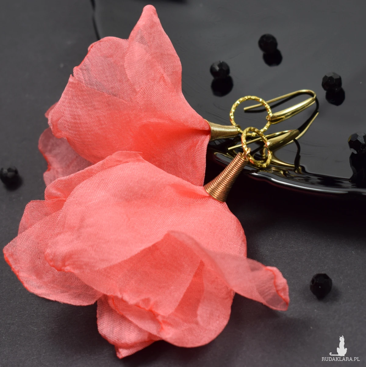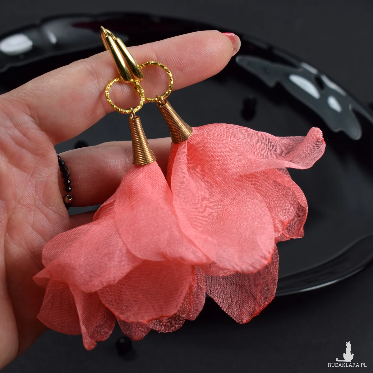 Subtelne i zwiewne kolczyki w eleganckim połączeniu koralowego różu i