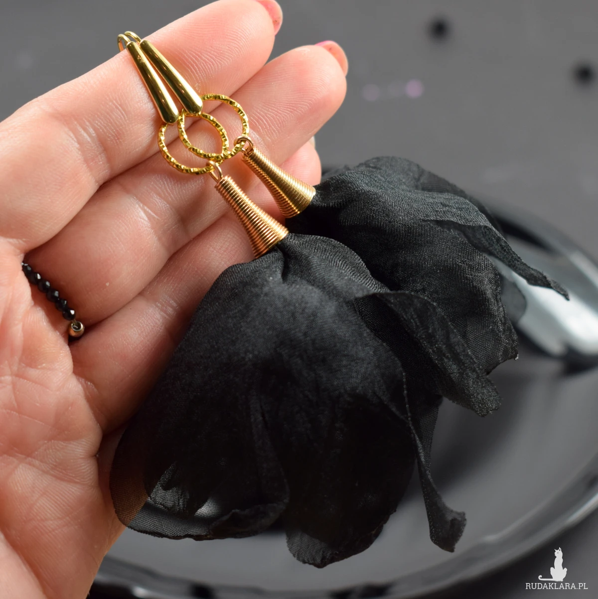 Subtelne i zwiewne kolczyki w eleganckim połączeniu czerni i złota.