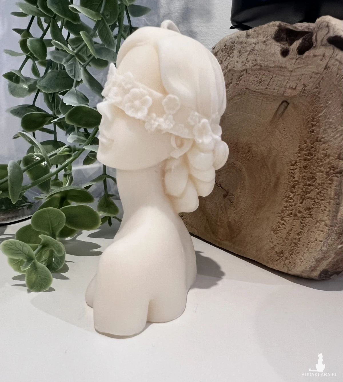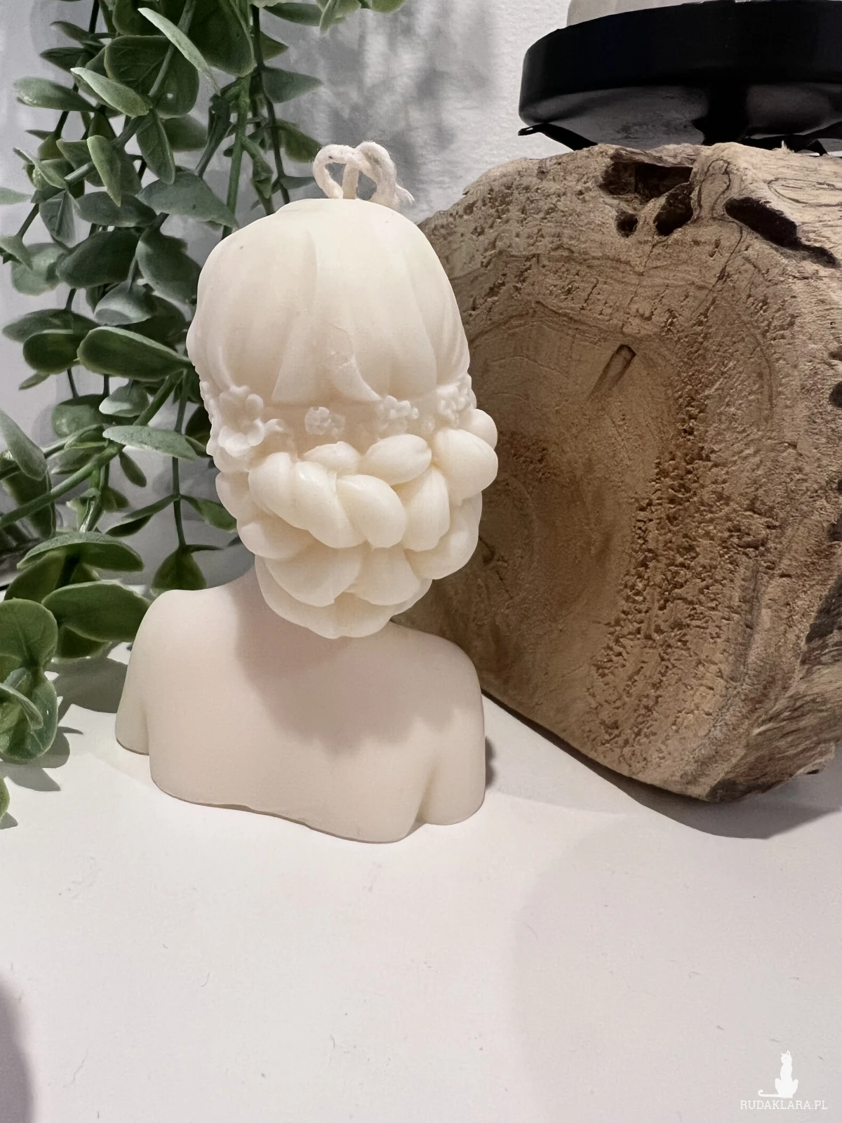 W tym ogłoszeniu świeca w kształcie kobiet z wiankiem