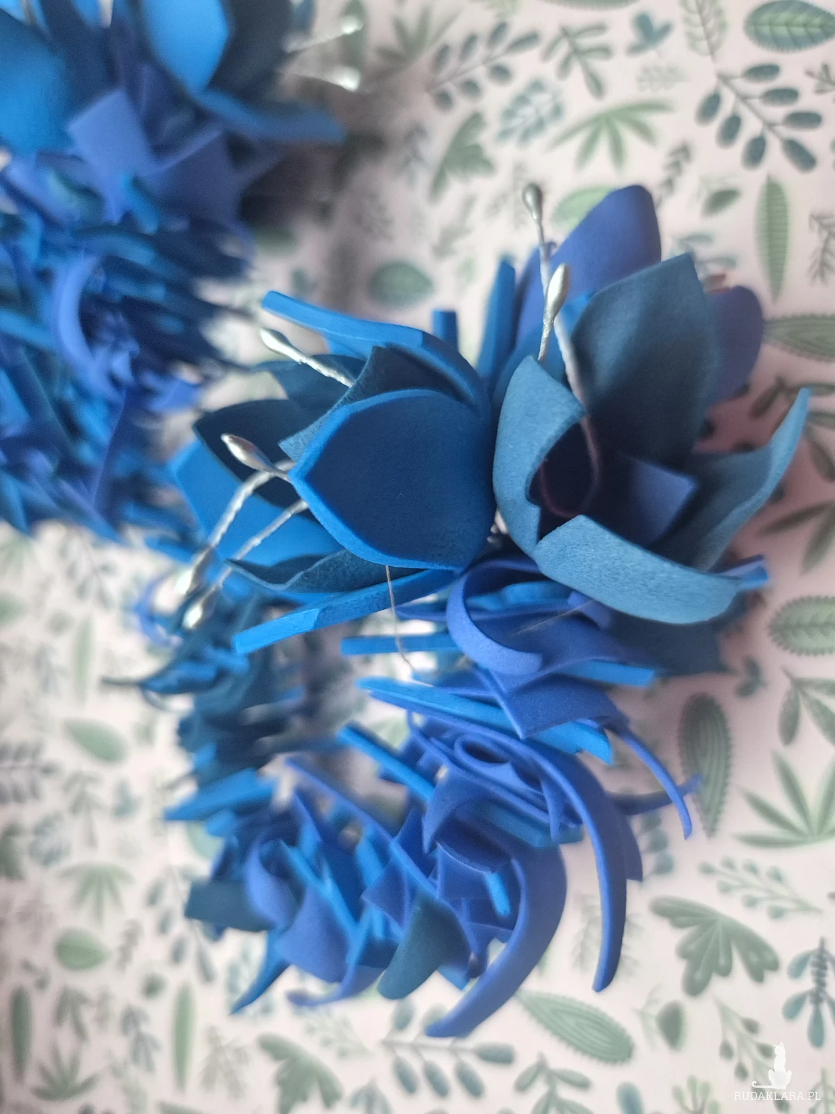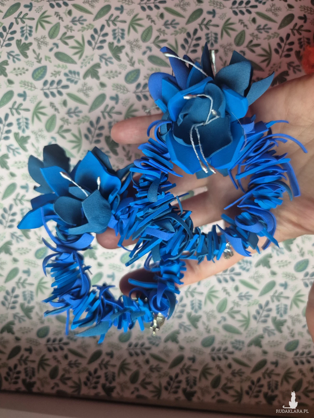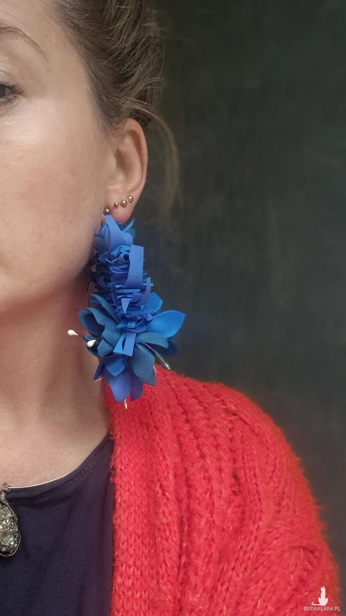 Klipsy granatowe kwiaty duże leciutkie cudne Box X1