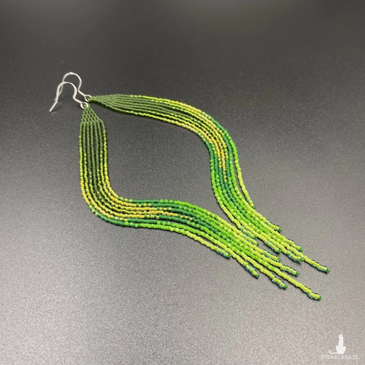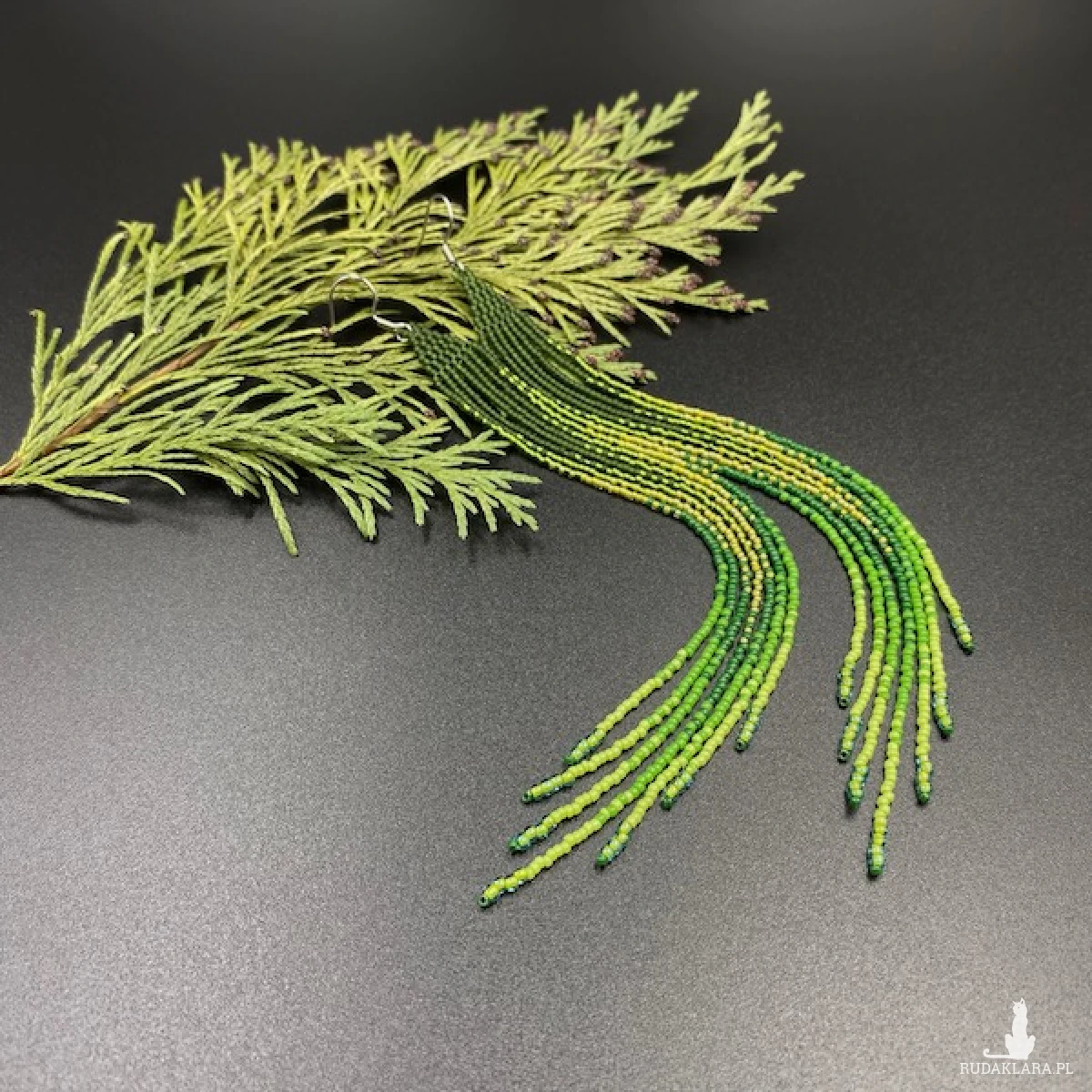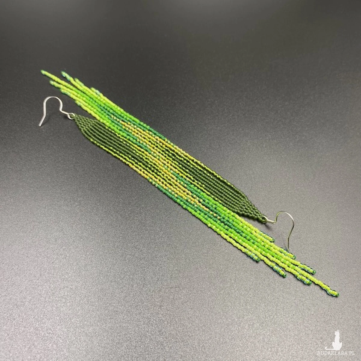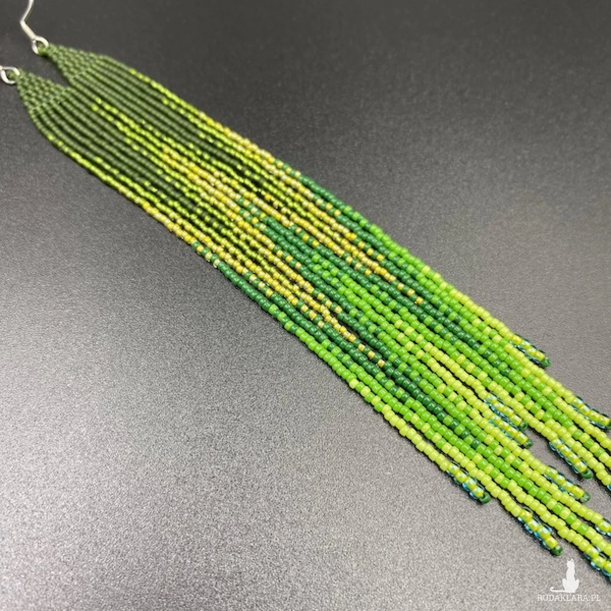Bardzo długie i wąskie kolczyki do ramion z efektem cieniowania, zostały wykonane z najmniejszych na rynku koralików Toho 15. W 100% utkane ręcznie i z największą starannością.