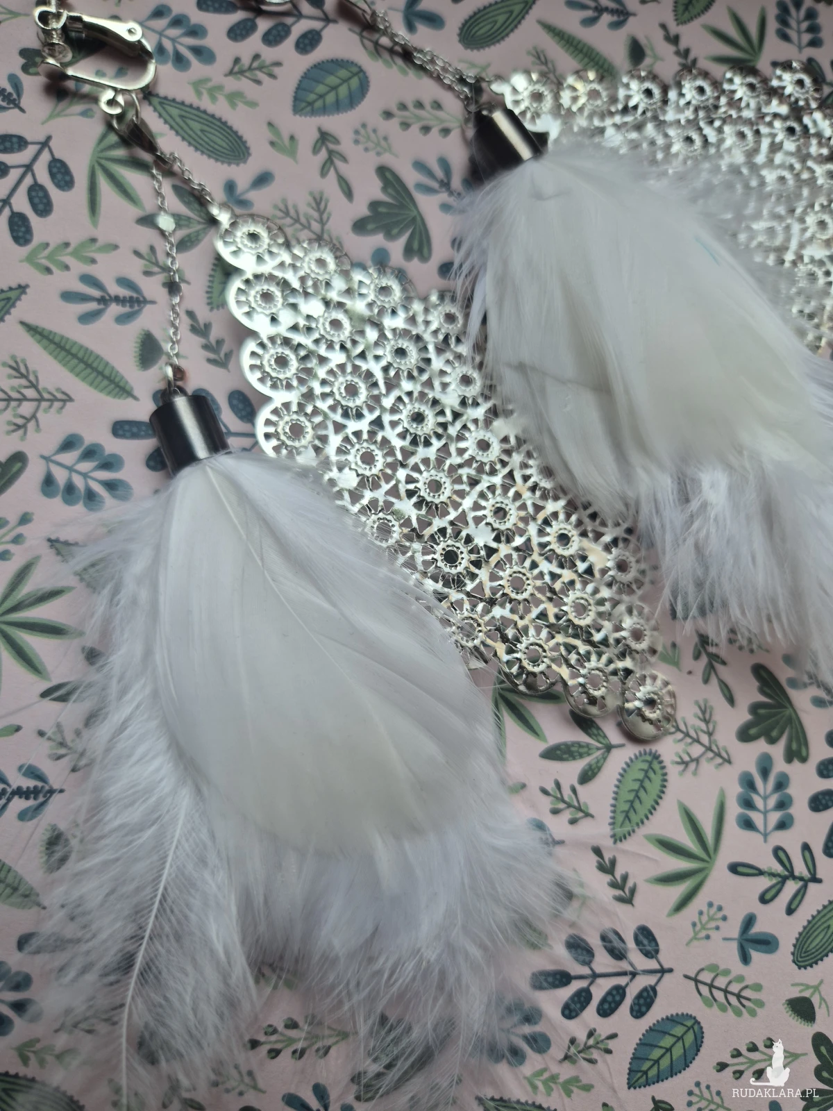 Klipsy długie białe pióra