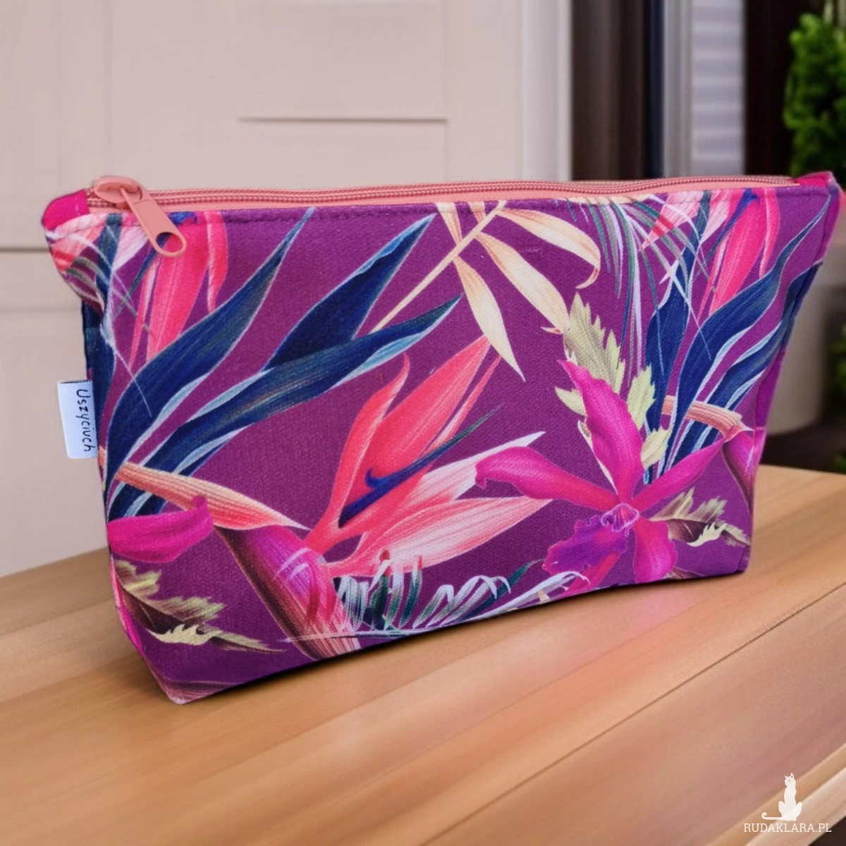 Kosmetyczka welurowa kwiaty strelicja