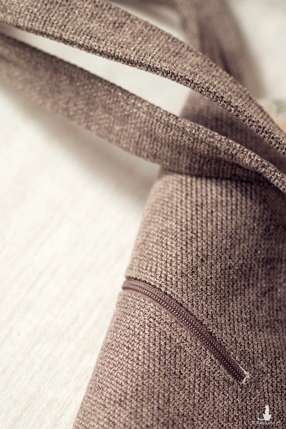 Torebka posiada bawełnianą podszewkę w kwiaty, a w środku kieszeń zapinaną na suwak. Z tyłu torby znajduje się dodatkowa kieszonka zapinana na suwak.