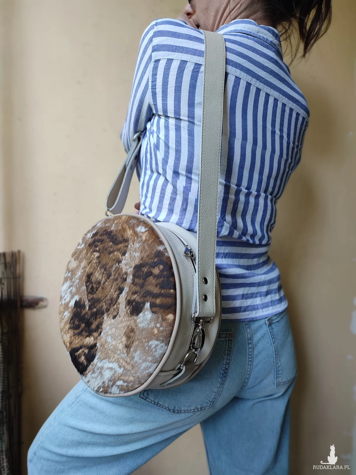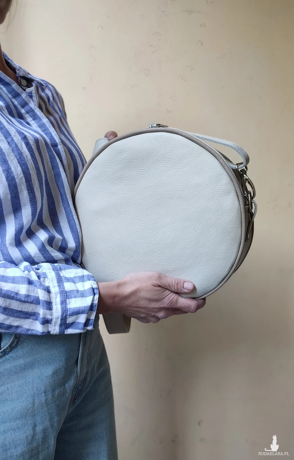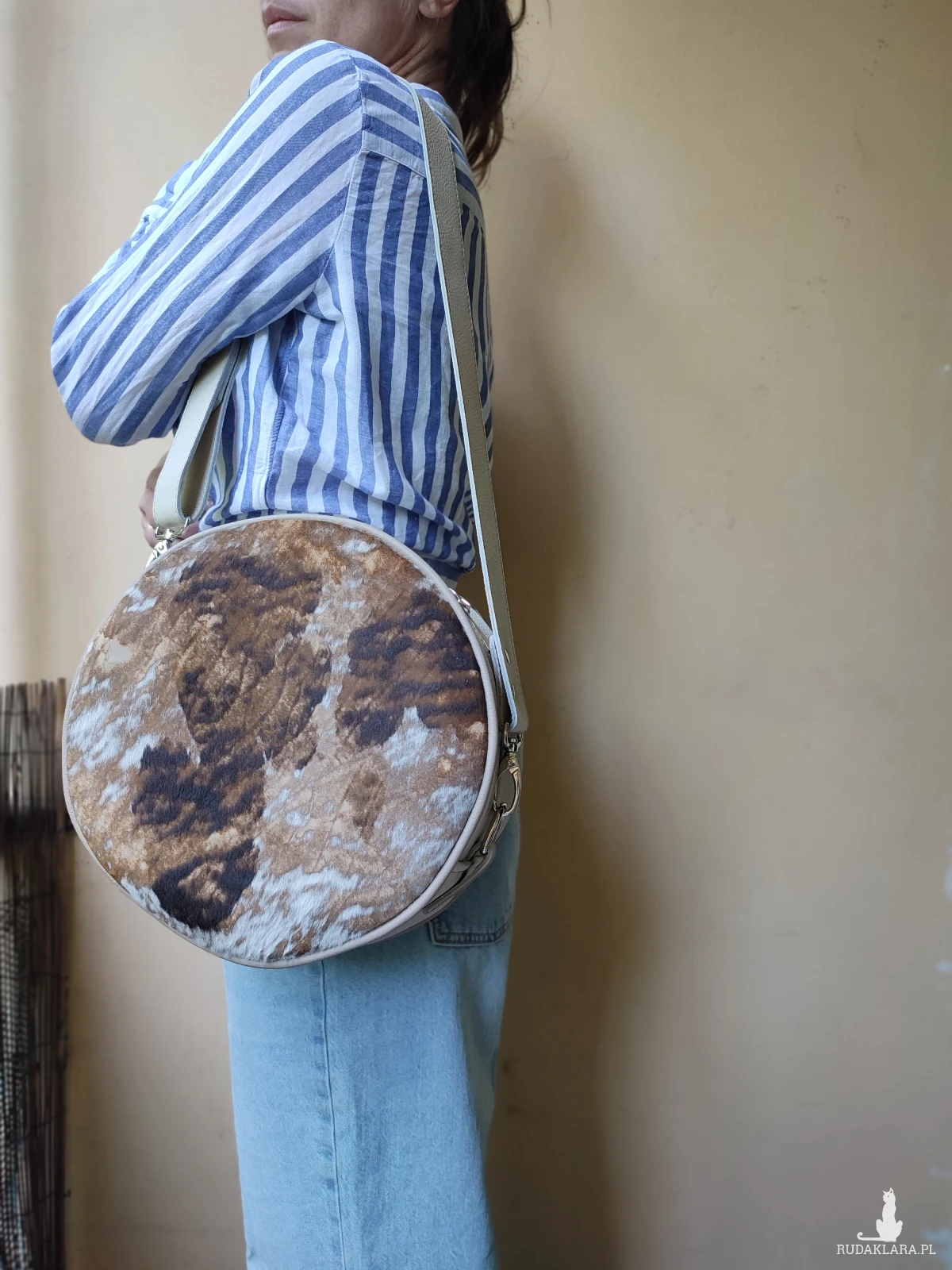Oryginalna torebka o okrągłym kształcie, wykonana ręcznie w autorskiej pracowni z najwyższej jakości naturalnych skór. To projekt jedyny w swoim rodzaju – powstał w pojedynczym egzemplarzu, z myślą o osobach, które poszukują niepowtarzalnych dodatków z duszą.