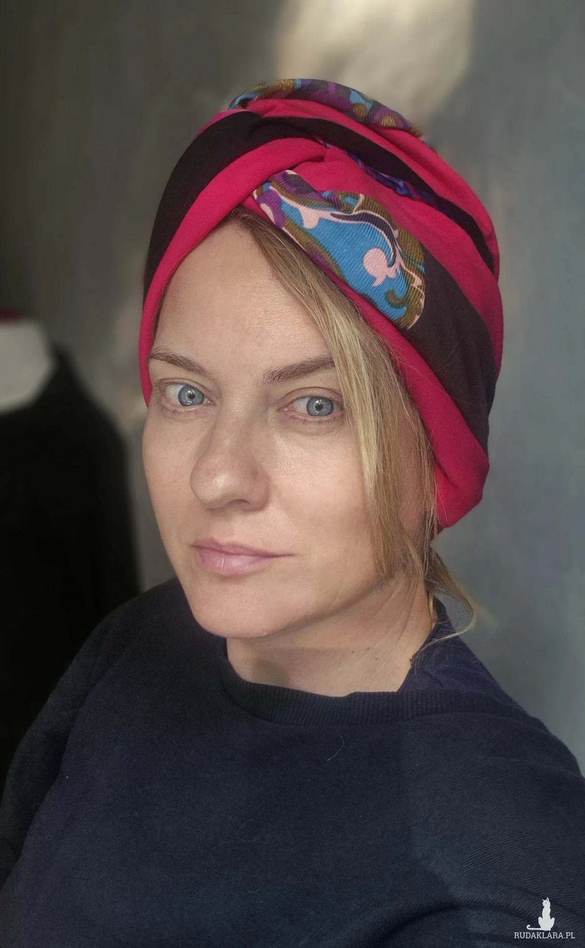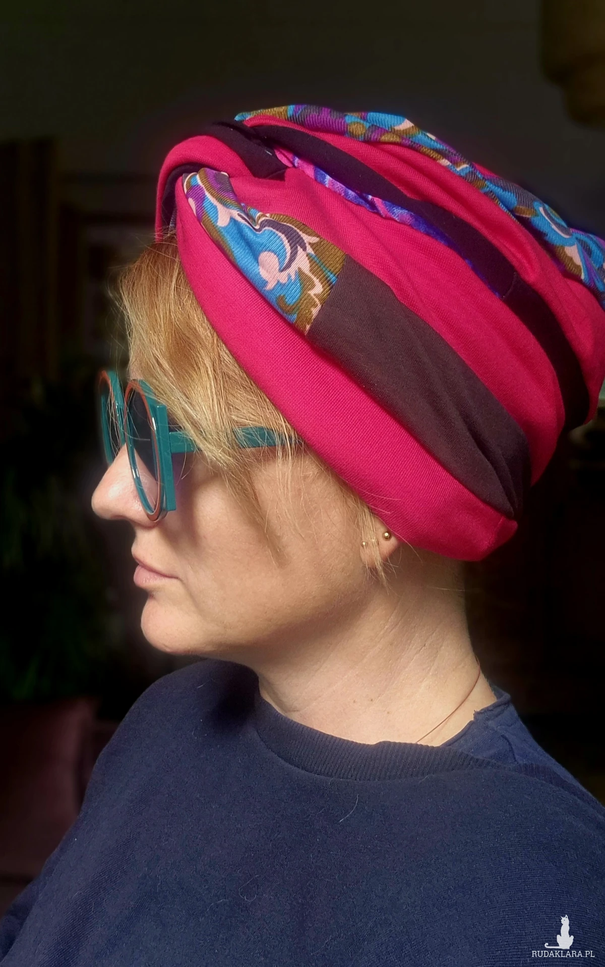 Turban kolorowy etno orient milutki uniwersalny, zalecany dla artystek, wizjonerek, prowokatorek i matek które już widzą światełko w tunelu, dla wyzwolonych kotek z wyobraźnia, dla pań bez wyobraźni NIE , box a1