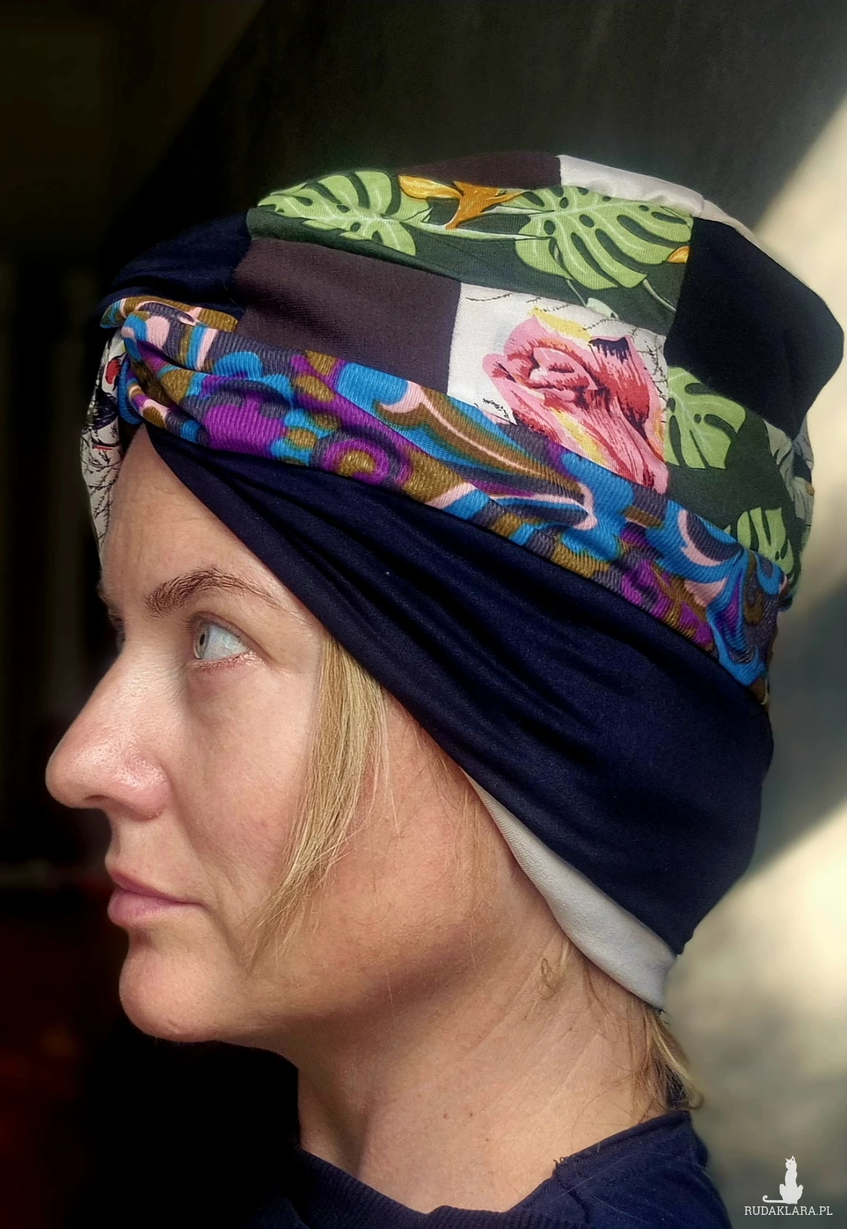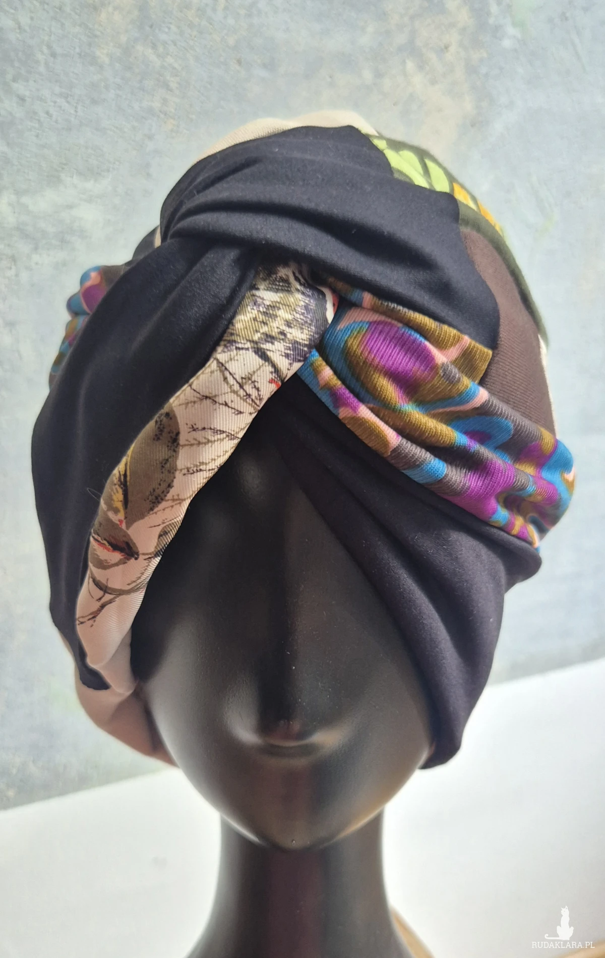 Turban kolorowy etno orient milutki uniwersalny, zalecany dla artystek, wizjonerek, prowokatorek i matek które już widzą światełko w tunelu, dla wyzwolonych kotek z wyobraźnia, dla pań bez wyobraźni NIE , box a1