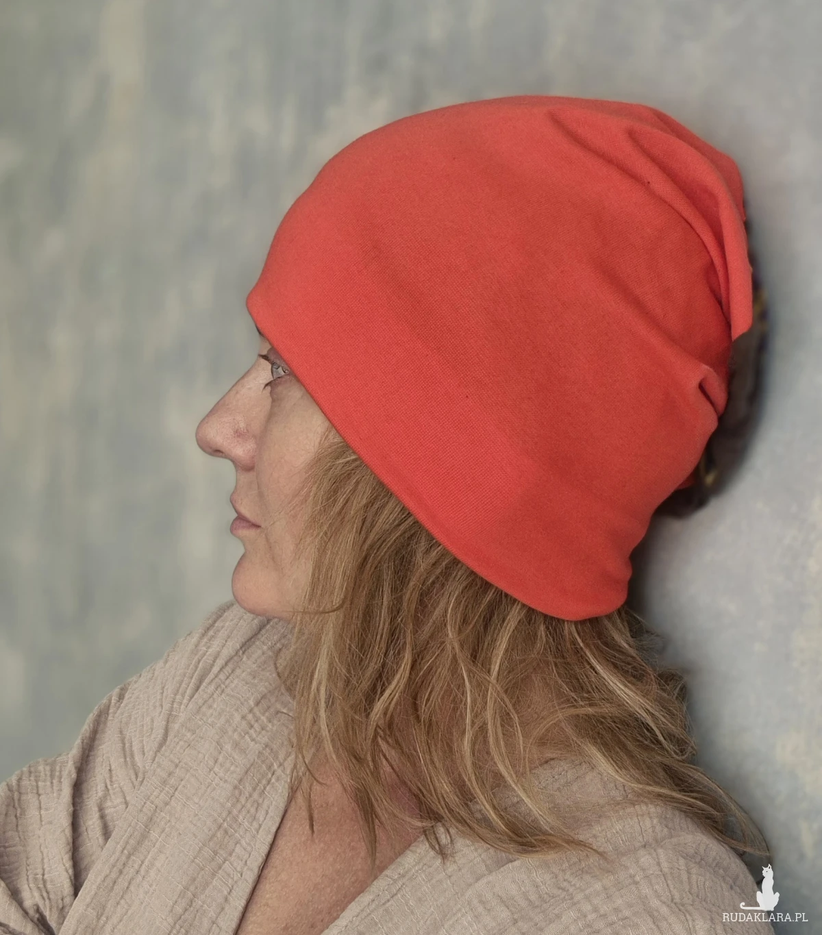Czapka damska pomarańczowa  smerfetka bez  podszewki  rozmiar uniwersalny polecam dobra na codzienne noszenie,na złą fryzurę,nad morze, Box a1