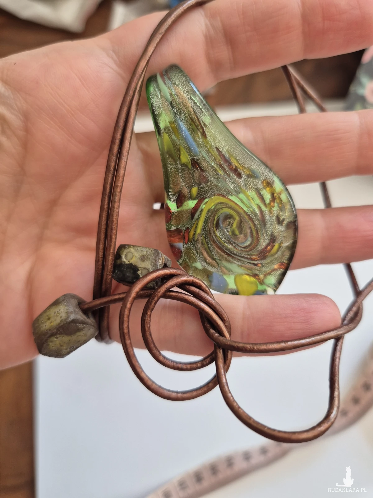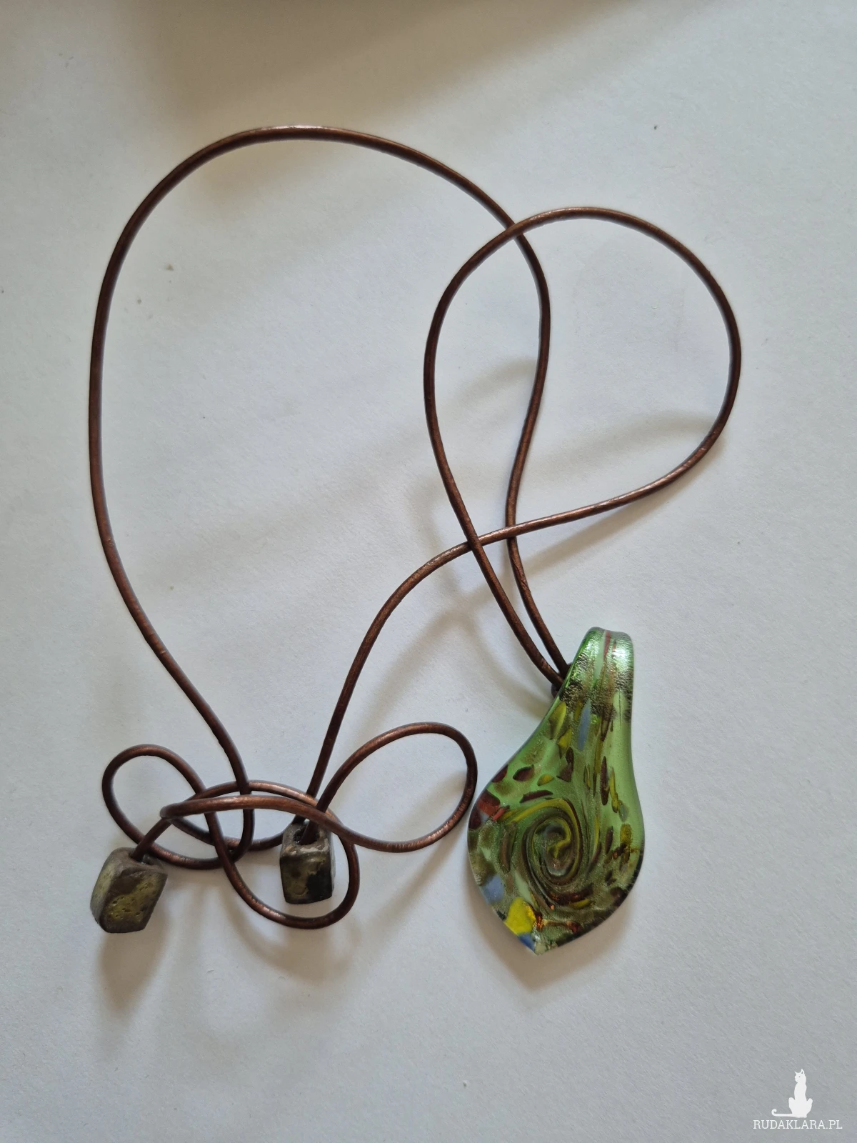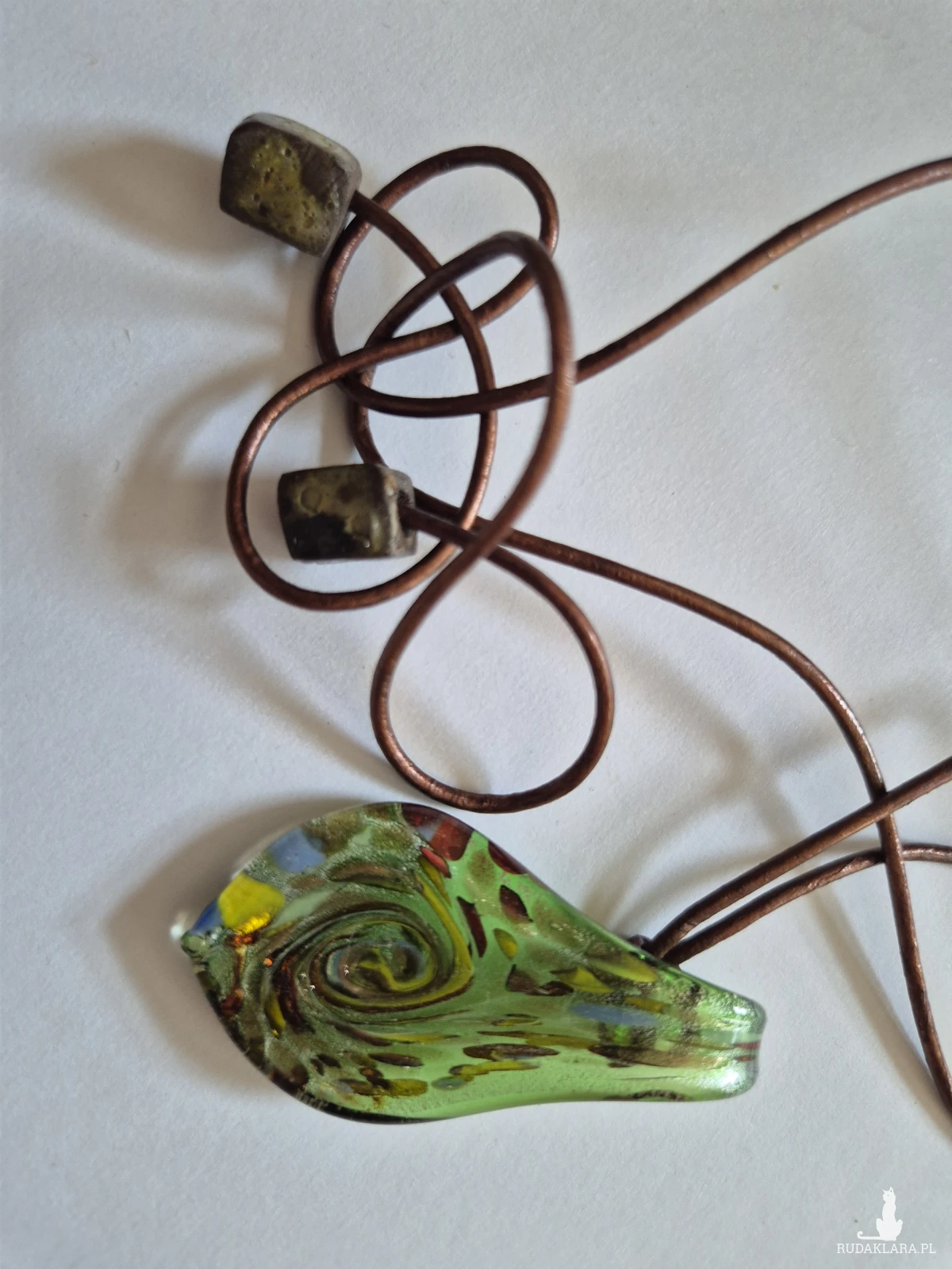 Naszyjnik z z zielonym wisiorem na rzemyku