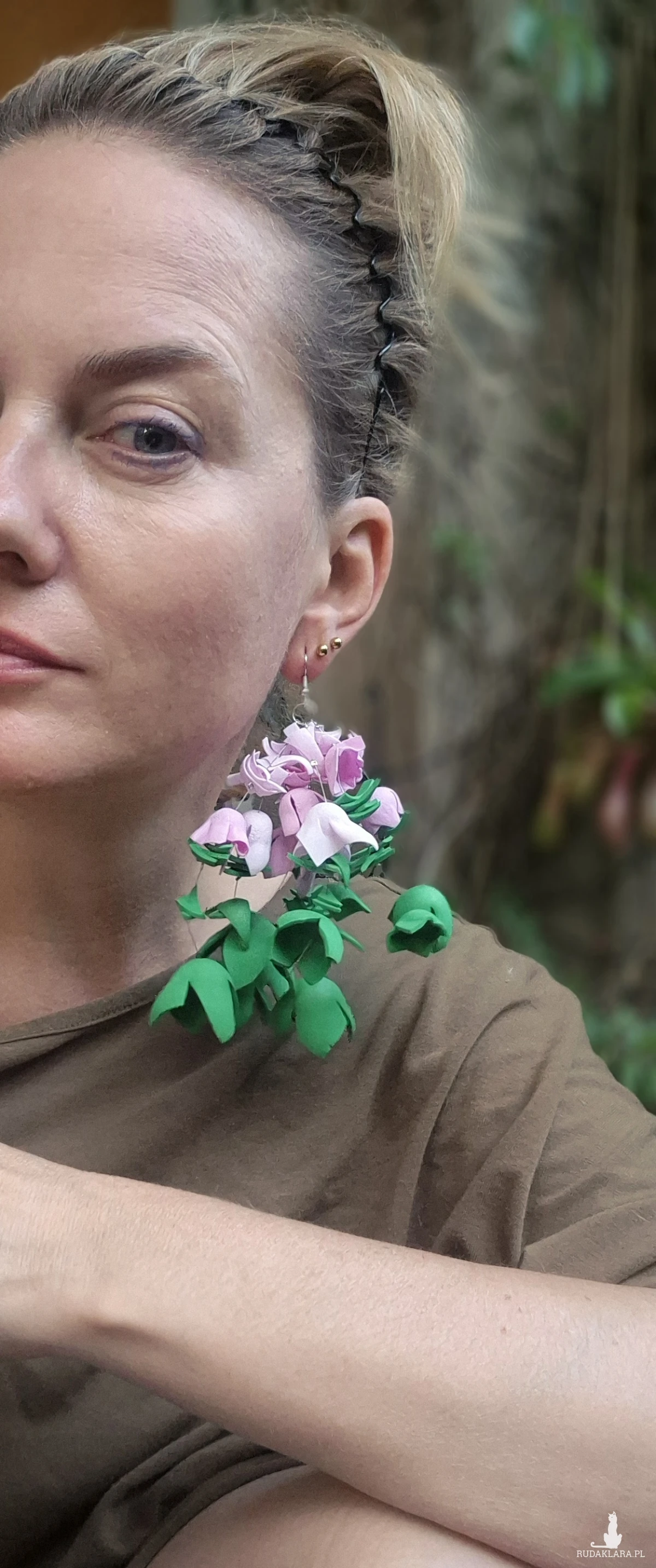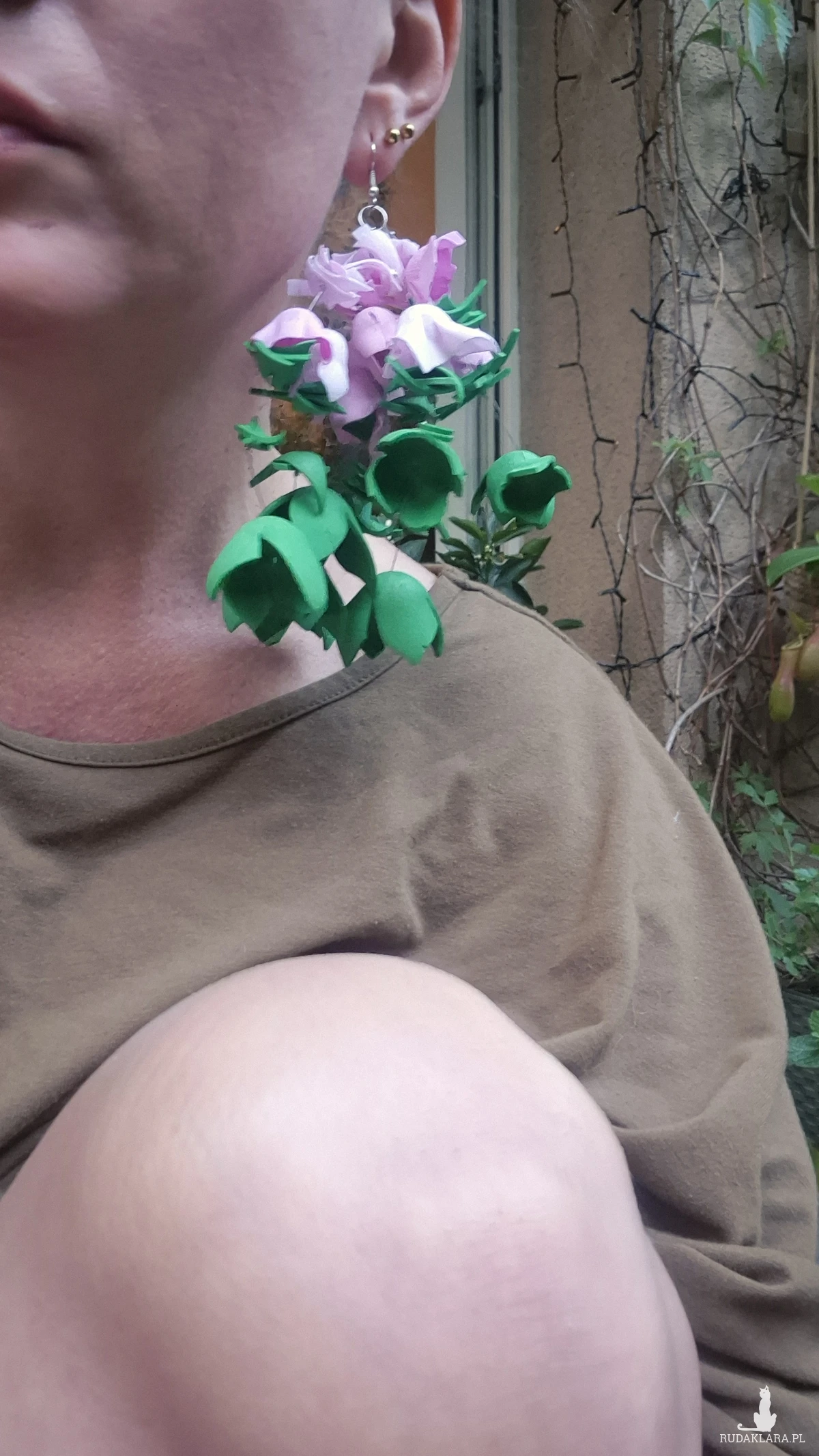 Kolczyki kwiaty zielono-różowe leciutkie obłędne zwracają uwagę totalnie polecam