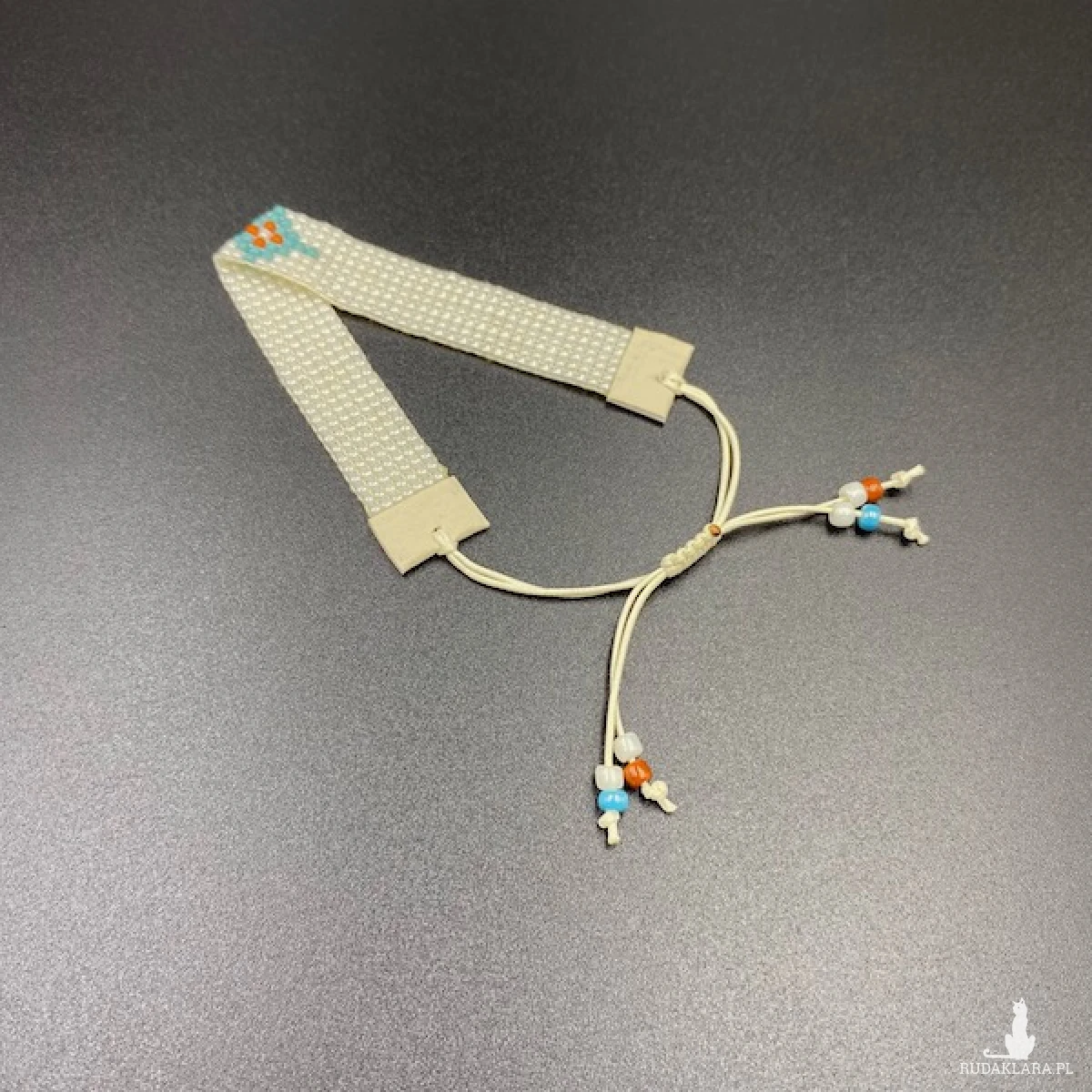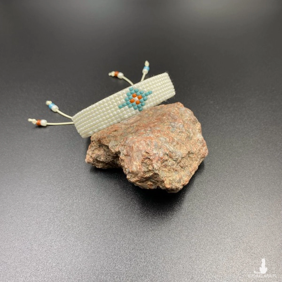 Bransoletka została utkana na krośnie z koralików Toho. Jest bardzo plastyczna i swobodnie układa się na nadgarstku.