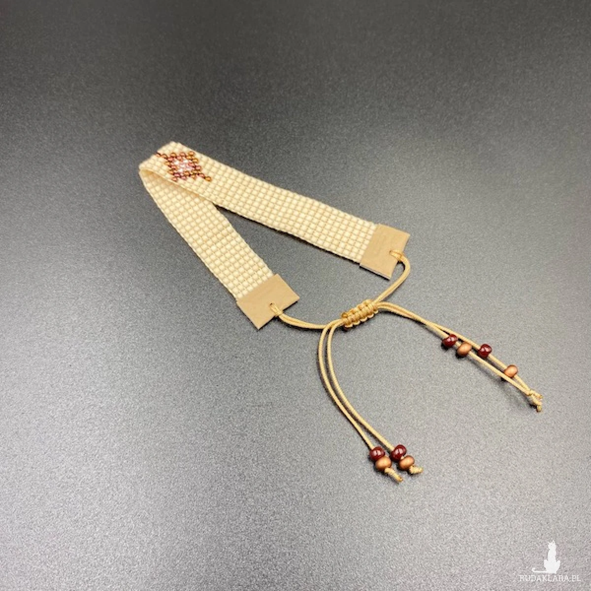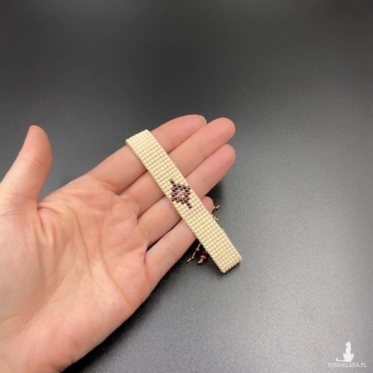 Bransoletka została utkana na krośnie z koralików Toho. Jest bardzo plastyczna i swobodnie układa się na nadgarstku.