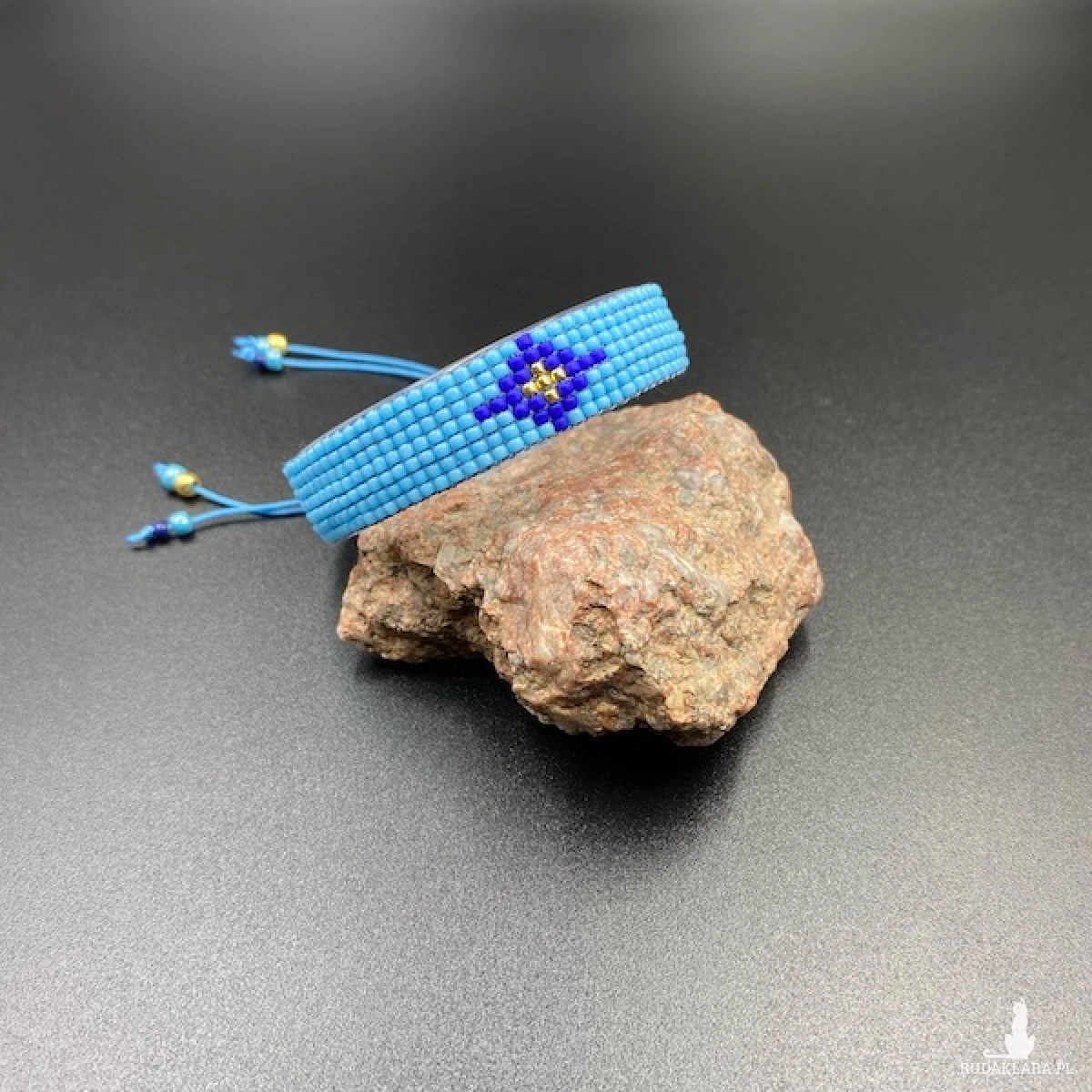 Bransoletka została utkana na krośnie z koralików Toho. Jest bardzo plastyczna i swobodnie układa się na nadgarstku.