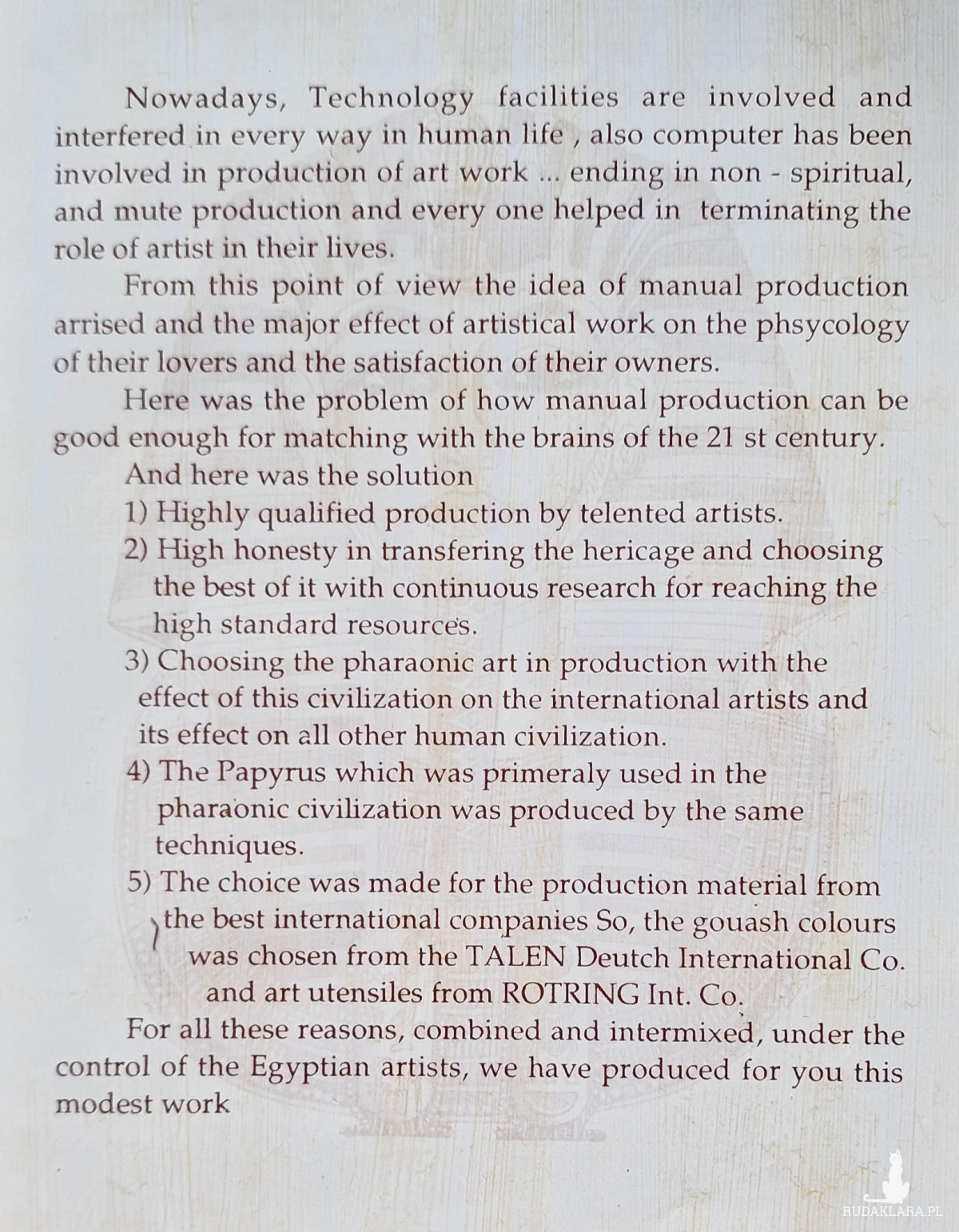 * Każdy papirus jest malowany ręcznie, więc Ten który otrzymasz nie musi ale może nieznacznie różnić się od tego na zdjęciu.