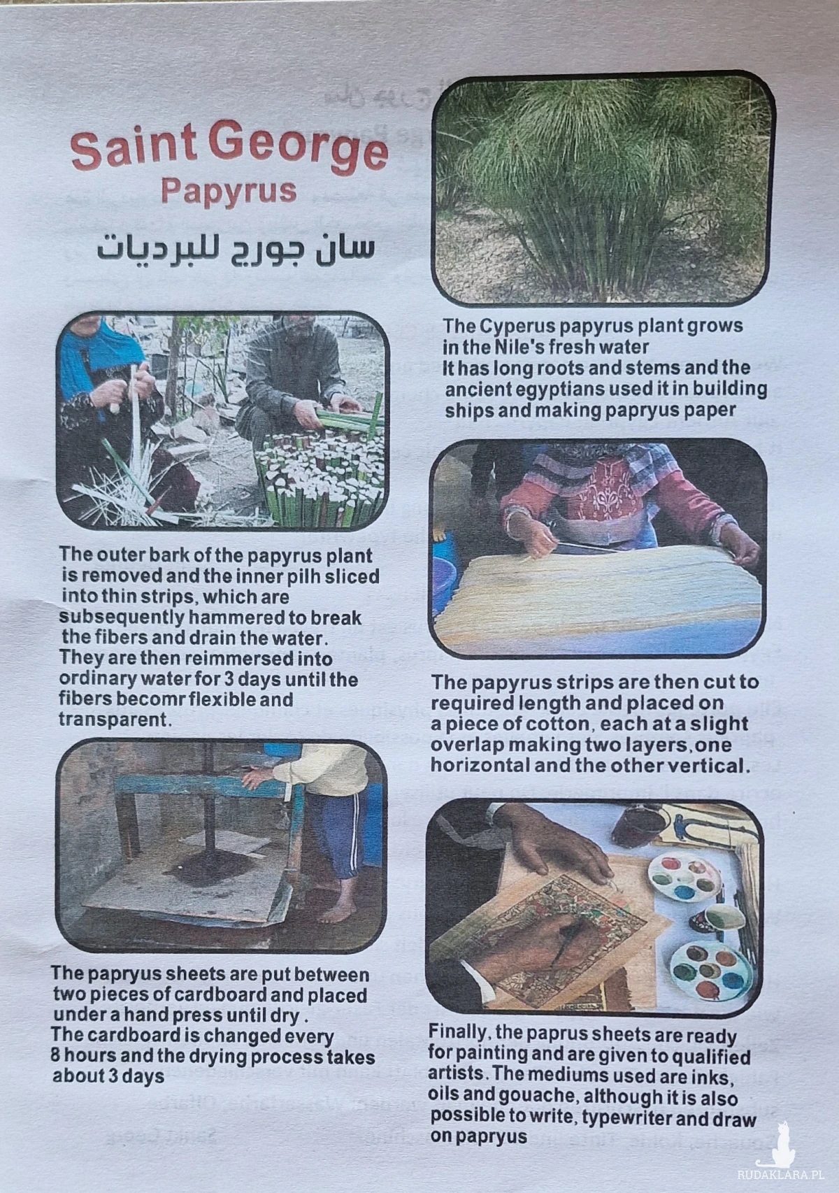 Mój mąż jest Egipcjaninem i od wielu lat zajmuje się papirusem. Postanowiliśmy umożliwić zakup tych cudownych obrazów również moim rodakom. Kilka razy w roku jestem w Egipcie i przywożę papirusy do Polski.