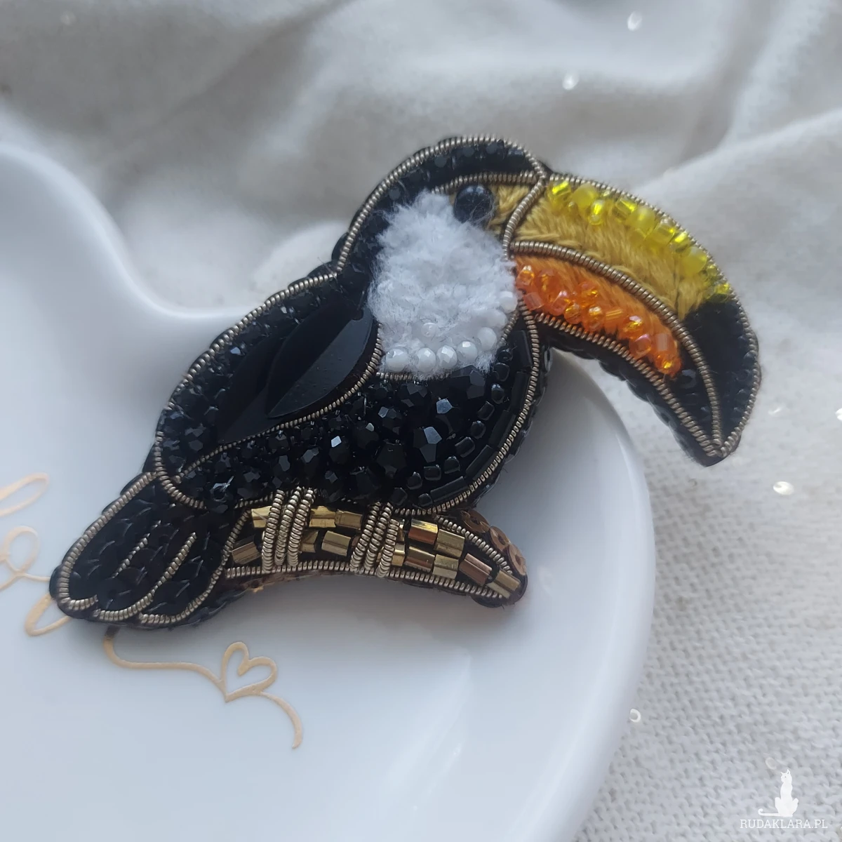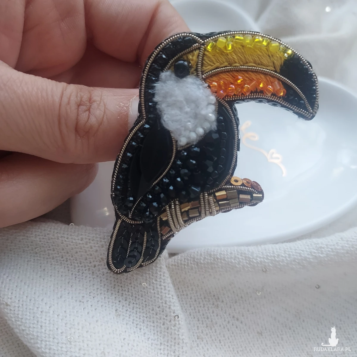 Wyjątkowa, orginalna broszka TUKAN - nie da się jej nie zauważyć nie tylko miłośniczkom ptaków oraz egzotyki.