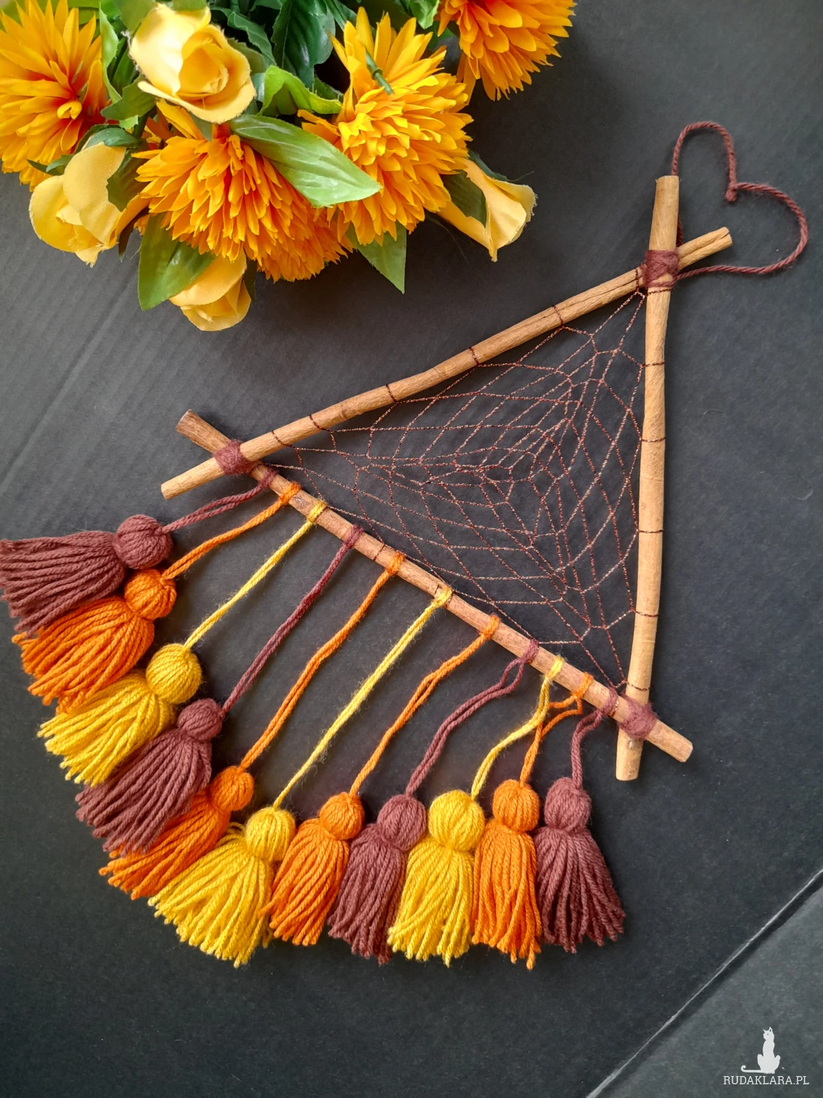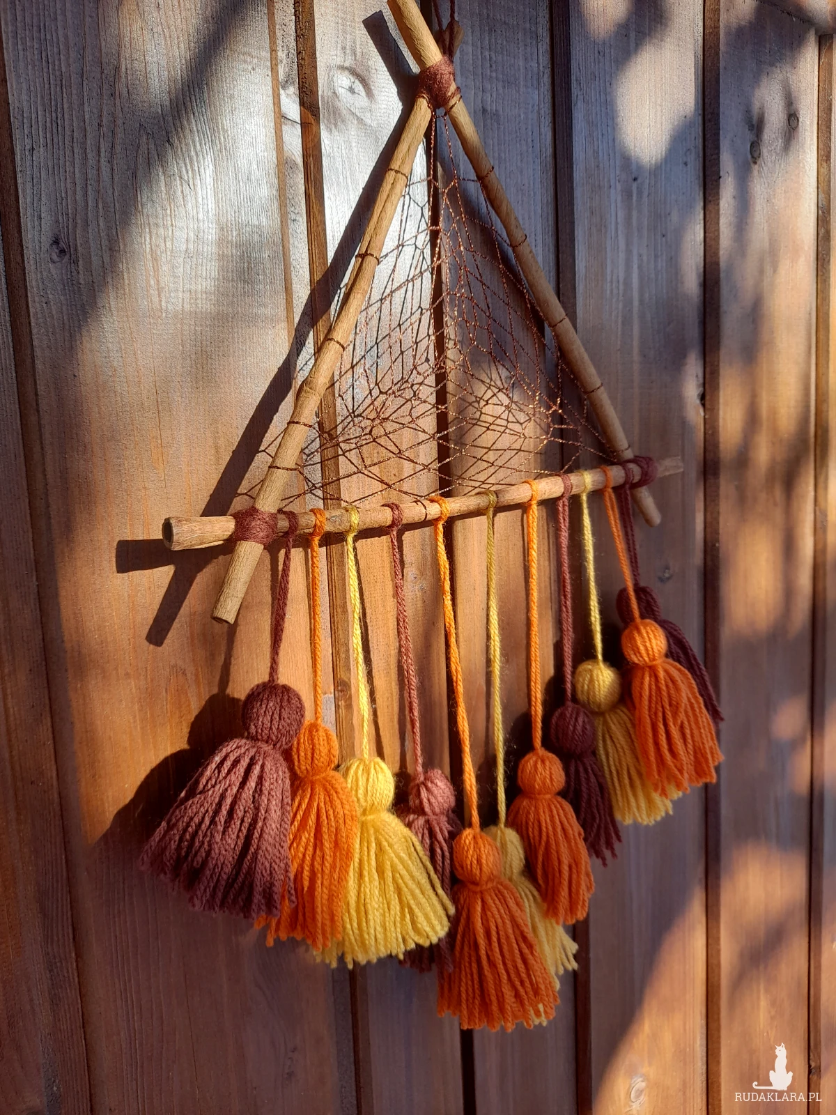 Cynamonowa rama dodaje subtelnego aromatu, a frędzle w odcieniach jesieni wprowadzają do przestrzeni przytulność, kolor i fakturę. Zawieś go na drzwiach, nad łóżkiem, w salonie lub kąciku relaksu, by stworzyć atmosferę spokoju i ciepła ✨