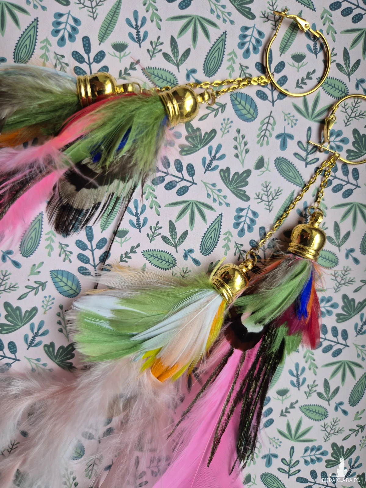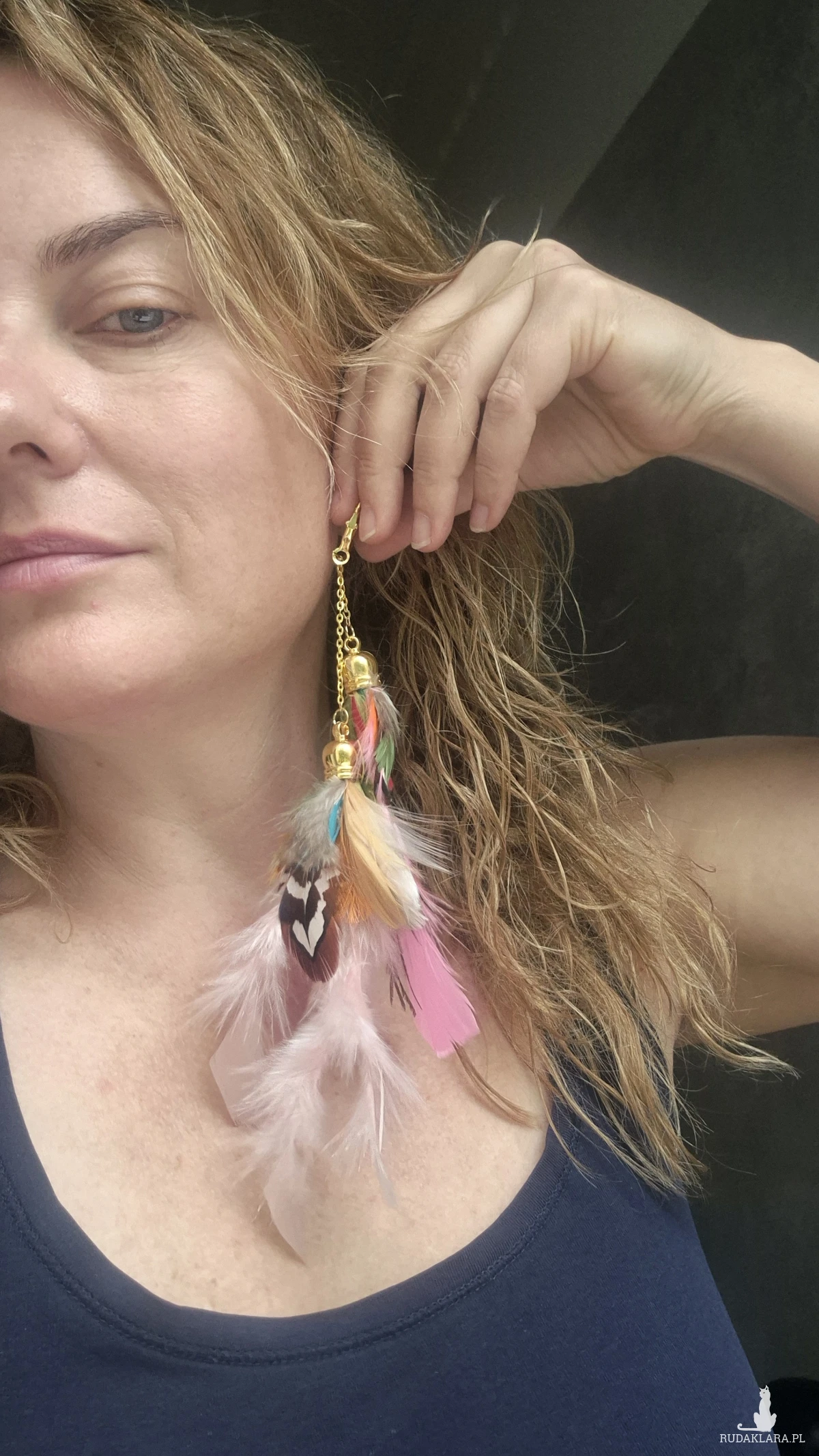 Kolczyki lekkie kwiaty bardzo stylowe dlugie pióra  polecam zwracają uwagę  leciutkie cudne Box X1
