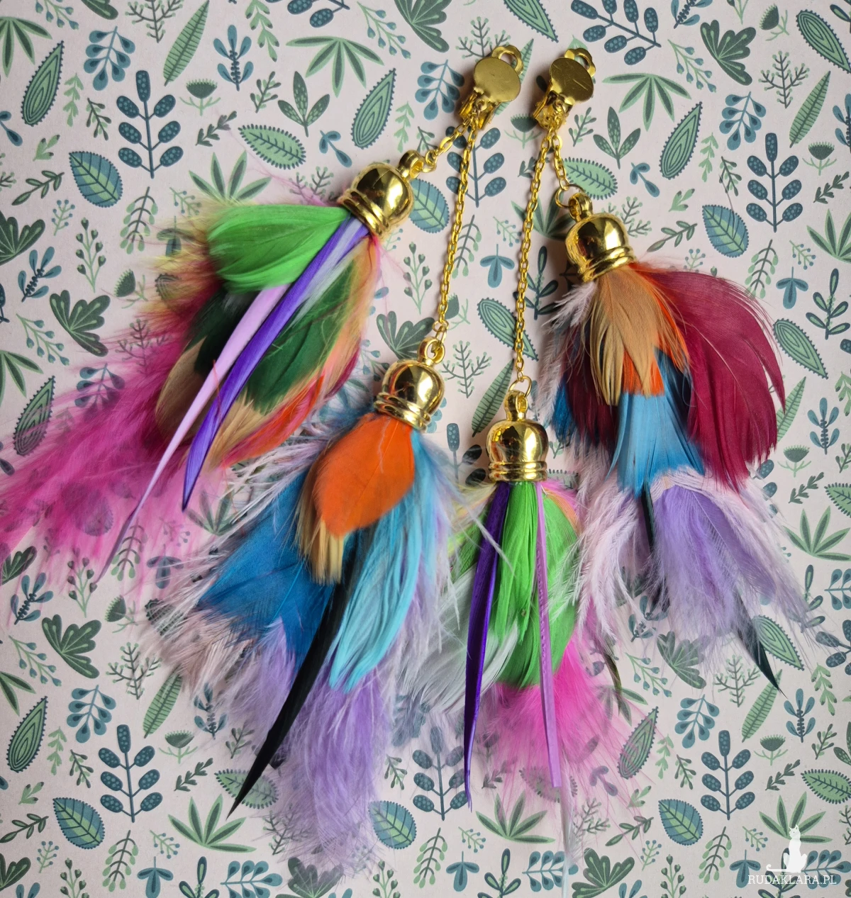 Klipsy długie pióra kolorowe