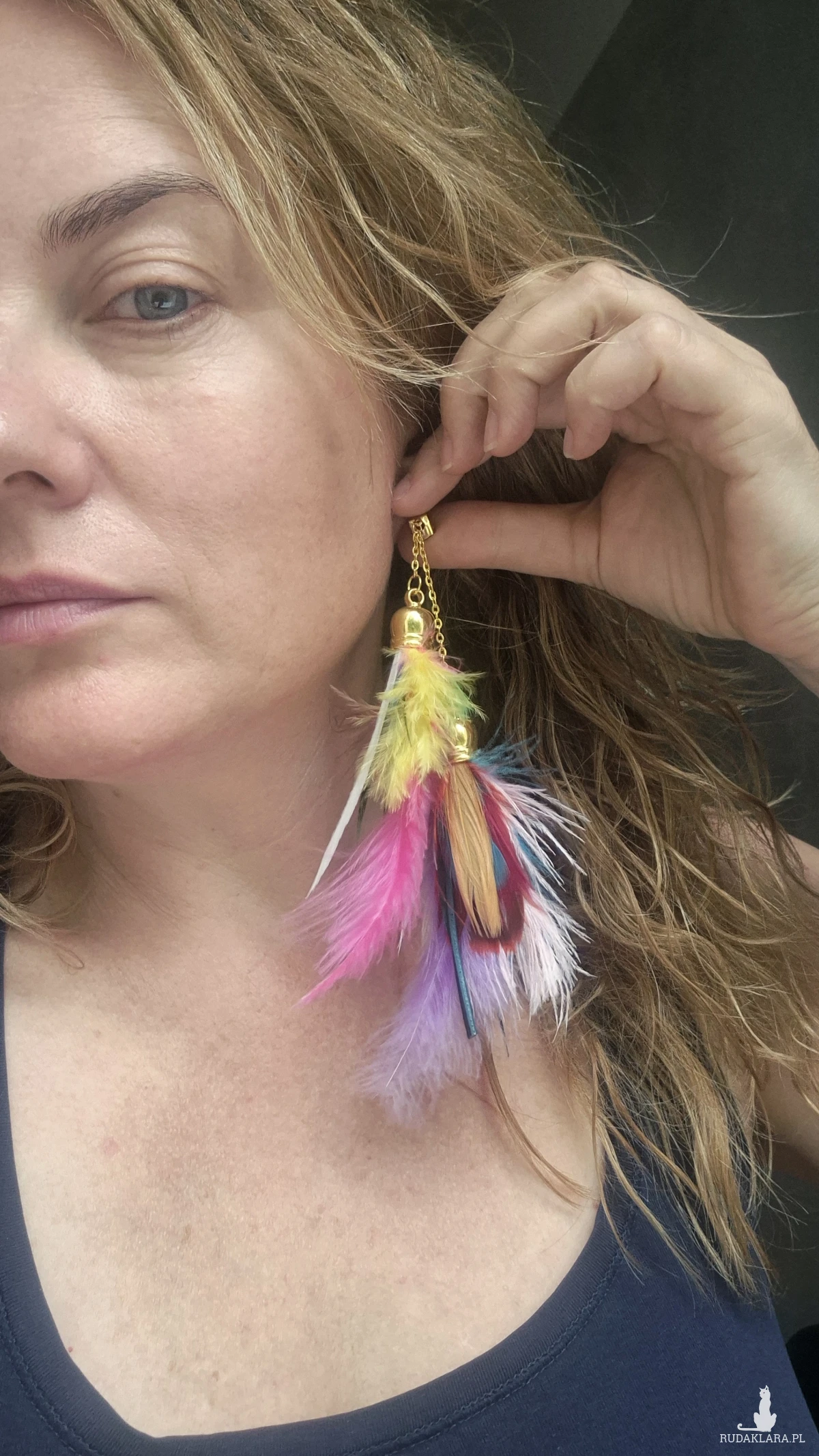 Klipsy długie pióra kolorowe bardzo stylowe polecam zwracają uwagę duże leciutkie cudne Box X1